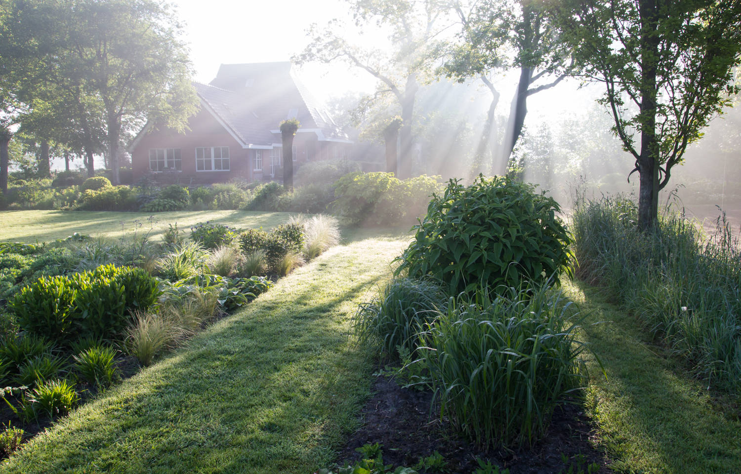 De Vries, der quasi mit der Natur malt, hat die Blickpunkte ausgemessen und miteinander kombiniert, so dass die Aussicht immer perfekt ist, ganz gleich, an welcher Stelle des Gartens man sich befindet. De Vries ist in seiner Arbeit sehr akribisch und ein wahrer Perfektionist, und er zögert nicht ganze und manchmal sehr schwere Pflanzenbüschel zu versetzen, um sein Ziel zu erreichen.