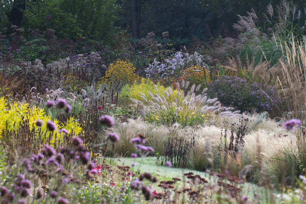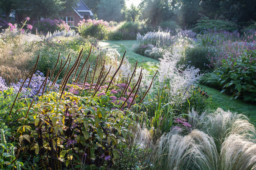 Hinsichtlich ihrer Platzierung im Garten fordern Gräser einiges an Feingefühl von ihrem Gärtner, damit sie zu mehr werden als nur hohen Grannen und Stielen. Auch darin liegt das Können von Jaap De Vries: Mit geschultem Auge und viel Fleiß hat er unzählige Sorten hin- und her verpflanzt (manchmal sogar während des Sommers…), damit auch jede Pflanze am richtigen Ort steht.