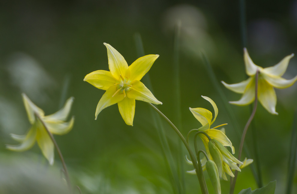 Und die Zahnlilie Erythronium ‘Pagoda’ streckt ihre anmutigen Blütenkronen empor. Die winzigen Lilien fühlen sich in den leichten Böden des Gartens besonders wohl.