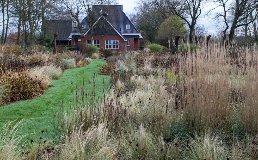 An seinen mit Reif bedeckten Gräsern und deren eleganten Silhouetten kann sich De Vries den ganzen Winter lang erfreuen. Ebenso erinnern sie daran, dass bald der Frühling wieder mit voller Kraft einsetzen wird. Während des Winters entwirft De Vries in der Wärme seines Heims neue Kompositionen für seinen Garten, um ihn bald an Stellen, an denen er etwas Farbe vermisst, um neue Pflanzen zu ergänzen.