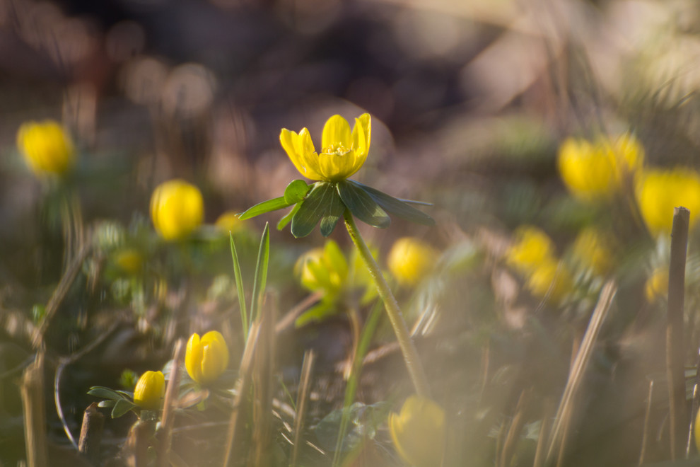 Die kostbare Zwerg-Iris wird begleitet von Winterling Eranthis hyemalis ‘Cilicica’, den das ungeübte Auge leicht mit dem Hahnenfuß verwechseln kann.