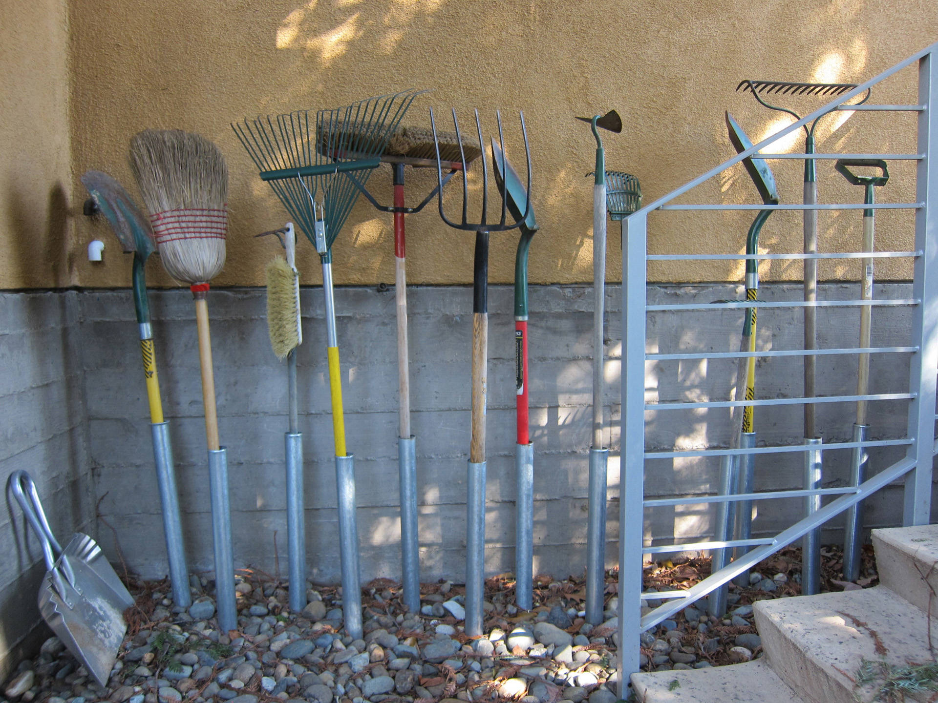 6. V-förmige Rechen. V-förmige Rechen eignen sich gut zum Zusammenkehren von feinerem Schnittgut und Laub. Diese Laubrechen aus Metall, auch Federbesen genannt, gibt es mit unterschiedlichen geformten Zinken. Ich bevorzuge die flachen, weicheren Zinken. Doch ich kenne auch einige Gärtner, die lieber mit runden, starreren Zinken arbeiten.