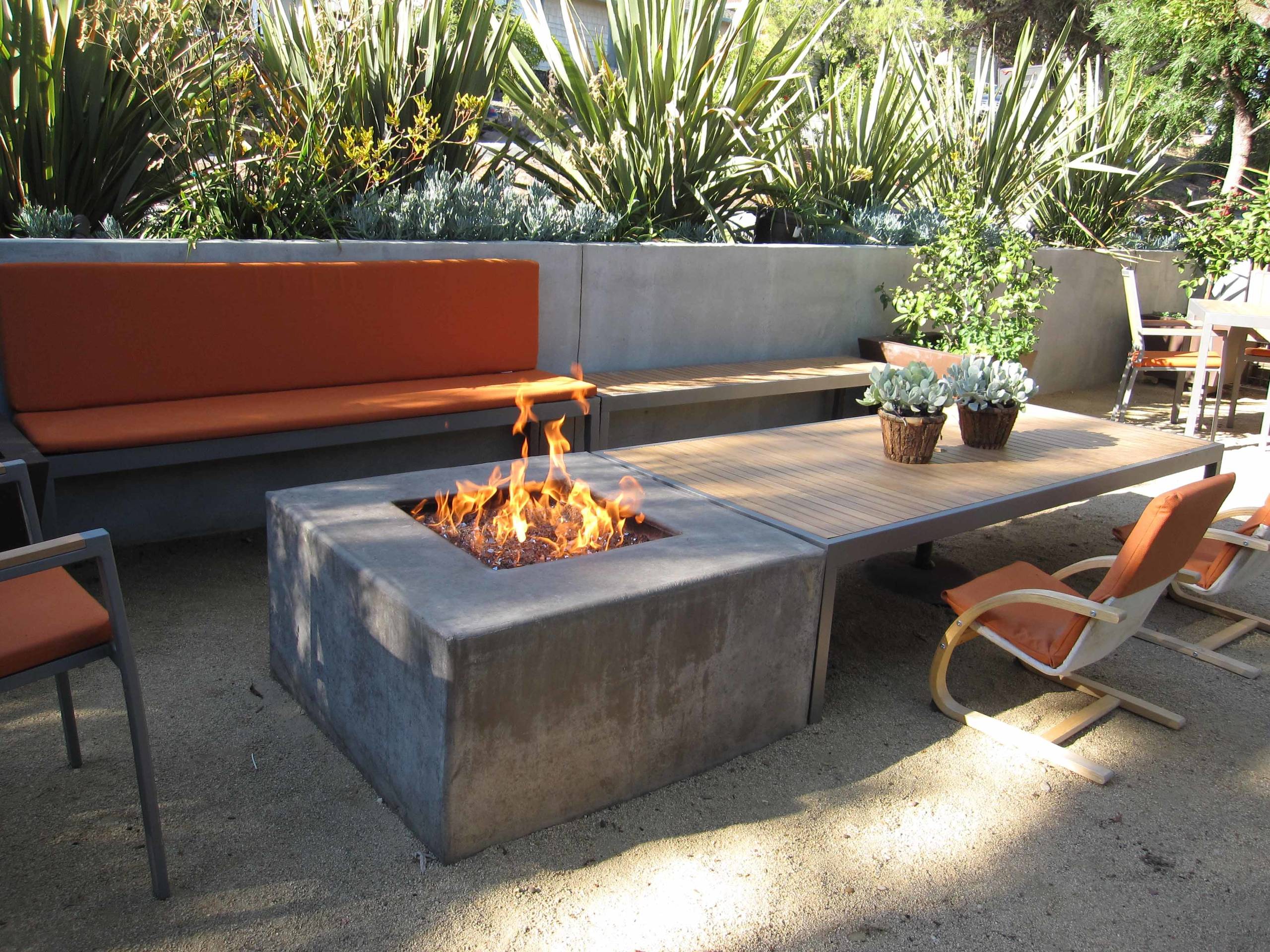 Auch Mauern, Beeteinfassungem und Wasserbecken lassen sich auf diese Weise vor Ort fertigen. Die Struktur der Schalungsbretter ist in diesem Hinterhofgarten in Portland bei der Feuerstelle und der Beetbegrenzung auf der Betonoberfläche zu sehen.