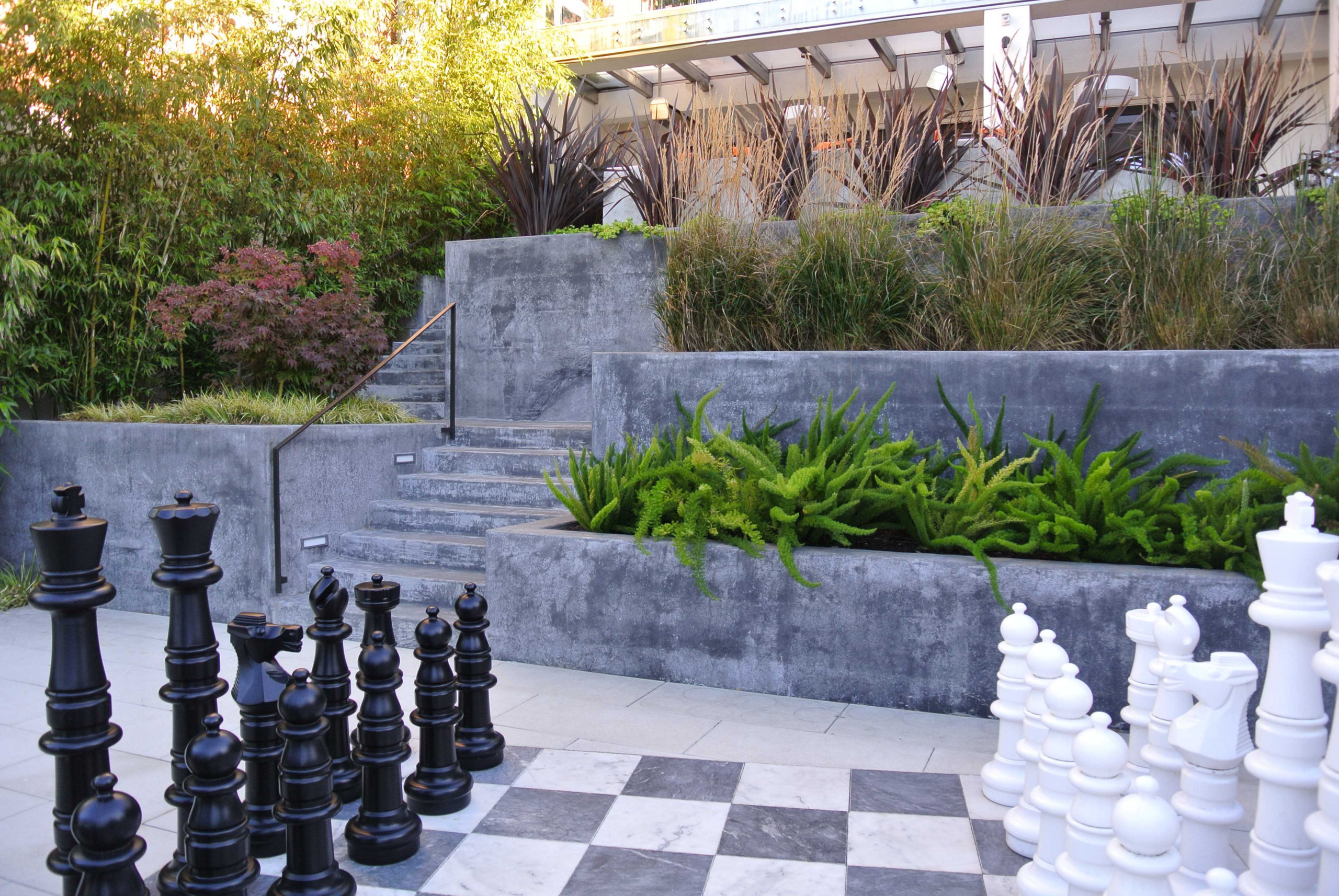 Auch diese Sitzblöcke – oder sind es Skulpturen? – stellten die Landschaftsgärtner von D-Crain in Sichtbetonbauweise her.