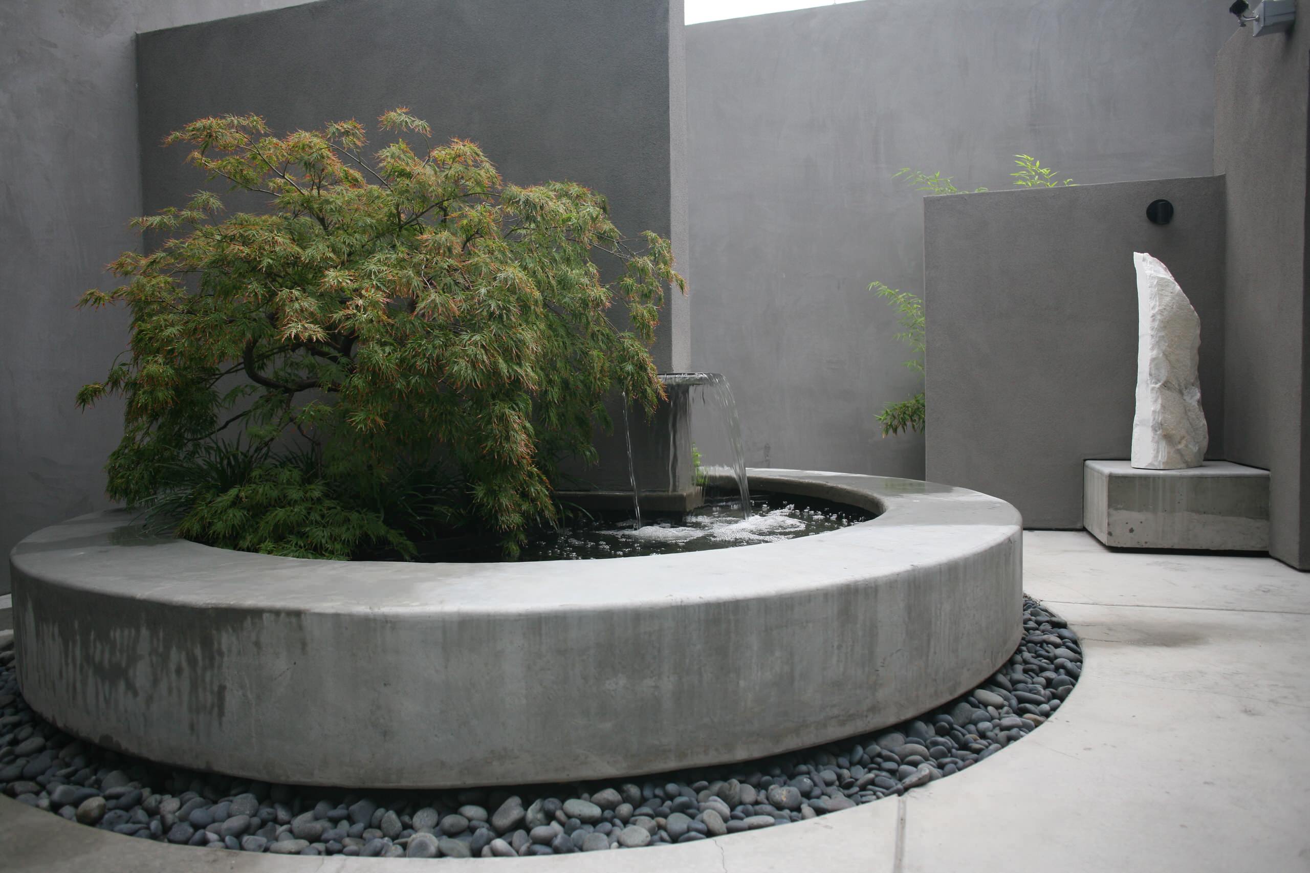 Schon die Römer bauten mit Beton. Es ist ein alter Werkstoff, der einem Garten einen modernen Look verpassen kann. Meist besteht Beton aus Zement, Sand oder Kies und Wasser. Das Aussehen der Oberfläche ist stark abhängig von der Korngröße des verwendeten Sands und Zusatzstoffen. Durch bestimmte Zuschlagstoffe wird Beton wasserdicht und eignet sich auch für den Bau von Pools und Wasserbecken.