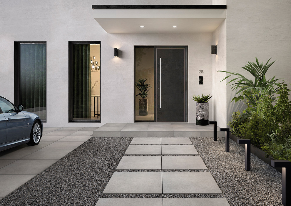 Ein effektvoll illuminierter Vorgarten oder Eingangsbereich lässt sich mit Bodeneinbauleuchten erzeugen. Auf Fassaden und unter Vordächern erzeugen sie spannungsvolle Muster aus Licht und Schatten, und dank ihrer geringen Einbautiefe verschwinden sie unauffällig im Boden. Dort sind sie problemlos begehbar, viele Modelle halten auch das Gewicht eines Pkws aus und eignen sich daher gut für Auffahrten.
