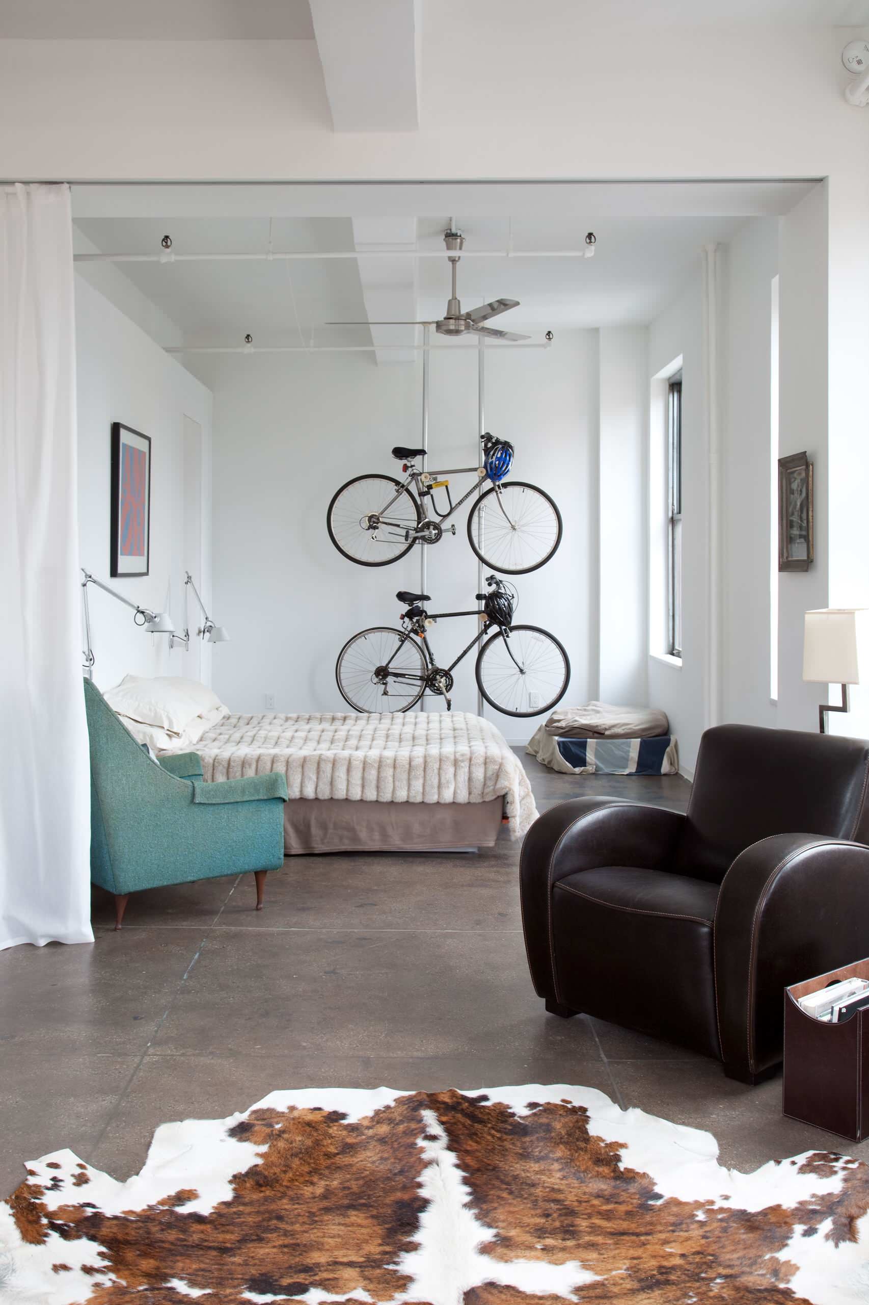 Andere bauen sich auch aufwendige Konstruktionen, um ihr Fahrrad in der Wohnung ganz nah bei sich zu haben.