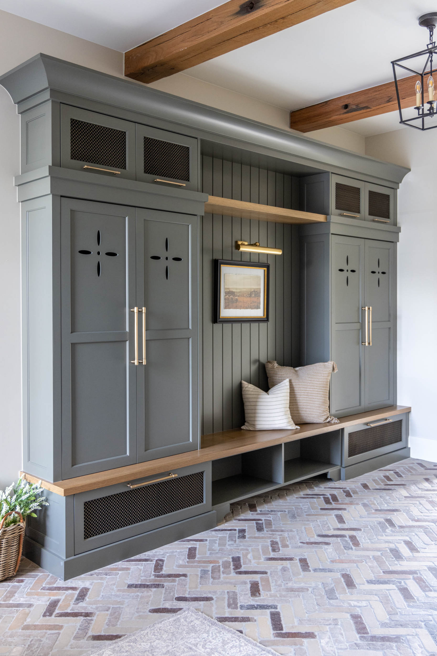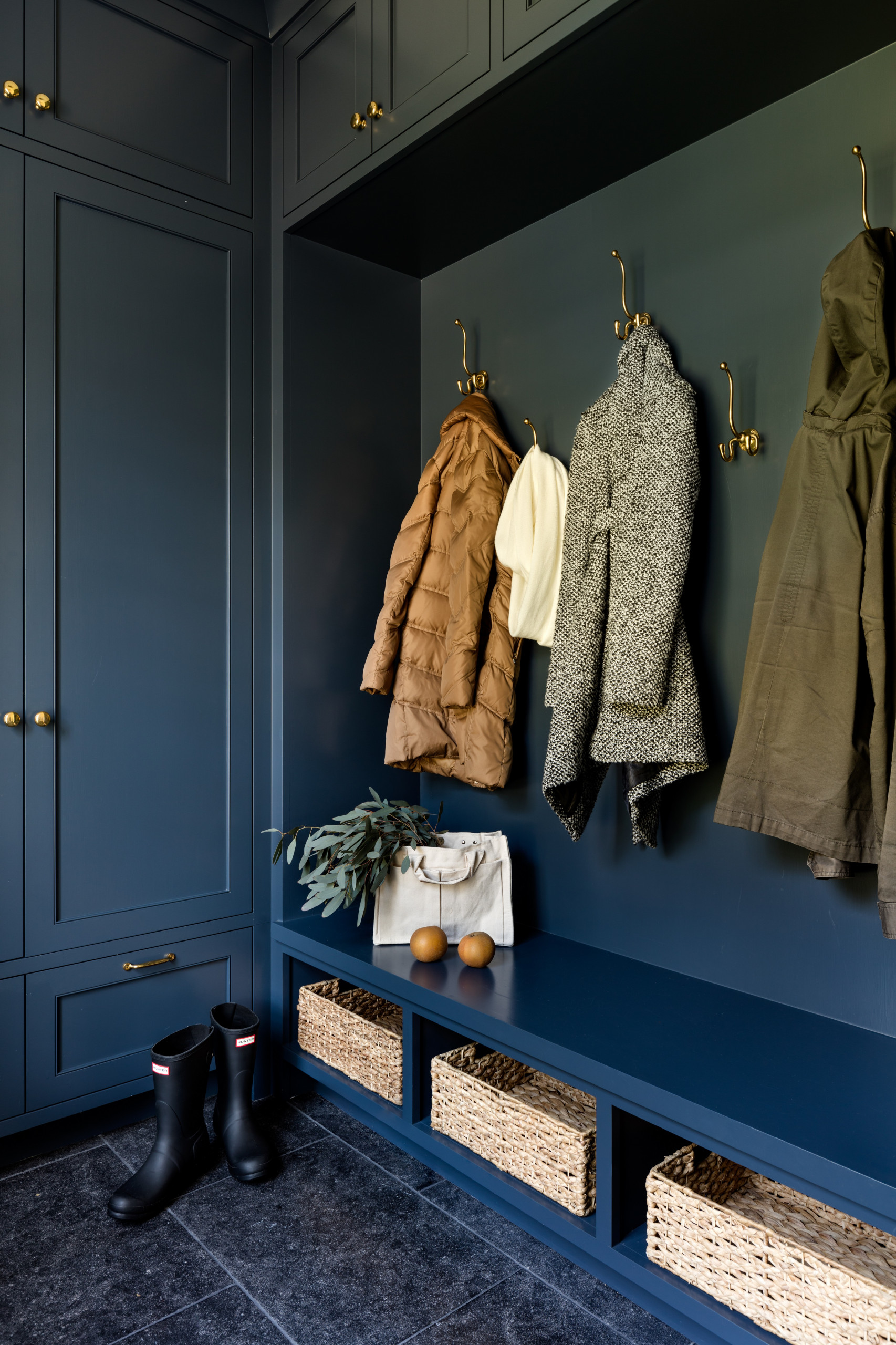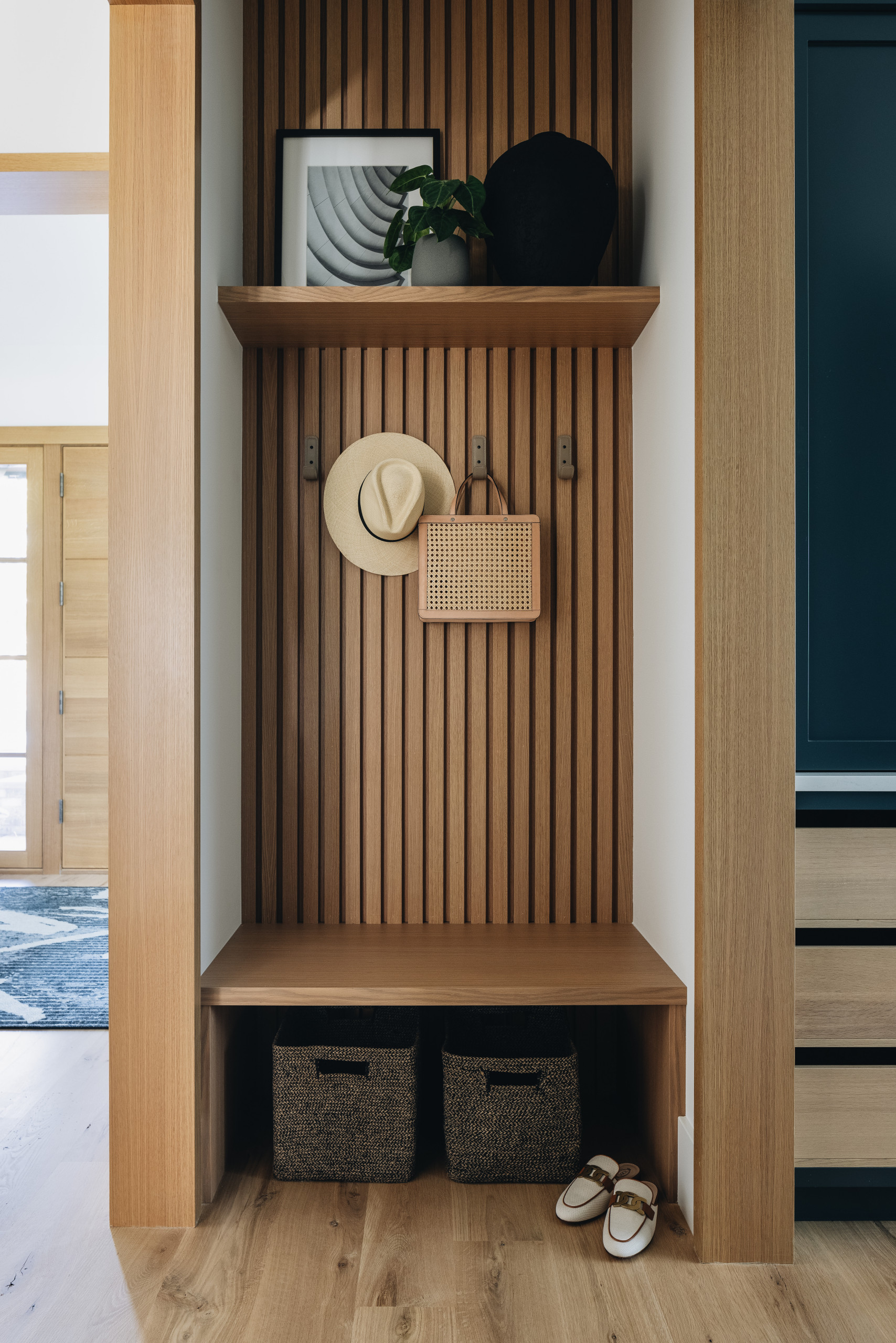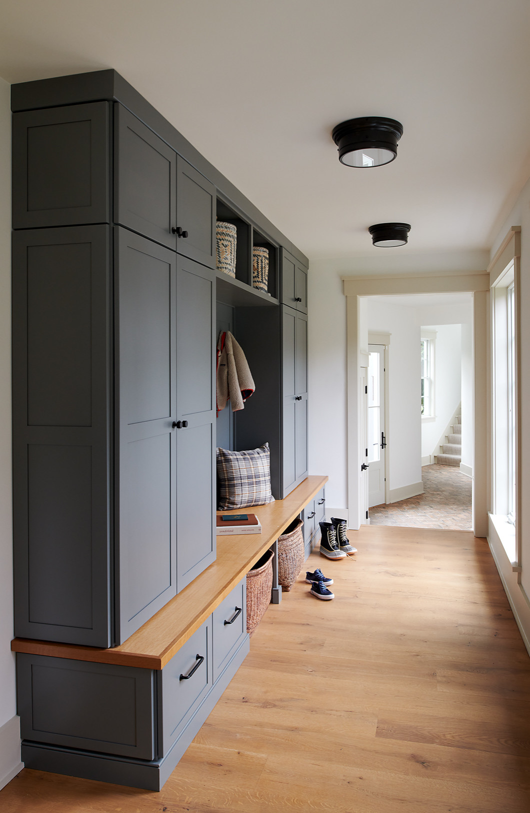 9. Wichtigstes Element fürs Gelingen: Möbel im Shaker-Stil, eine Sitzbank, Schuhablagen darunter. Von: Lisa Furey Interiors