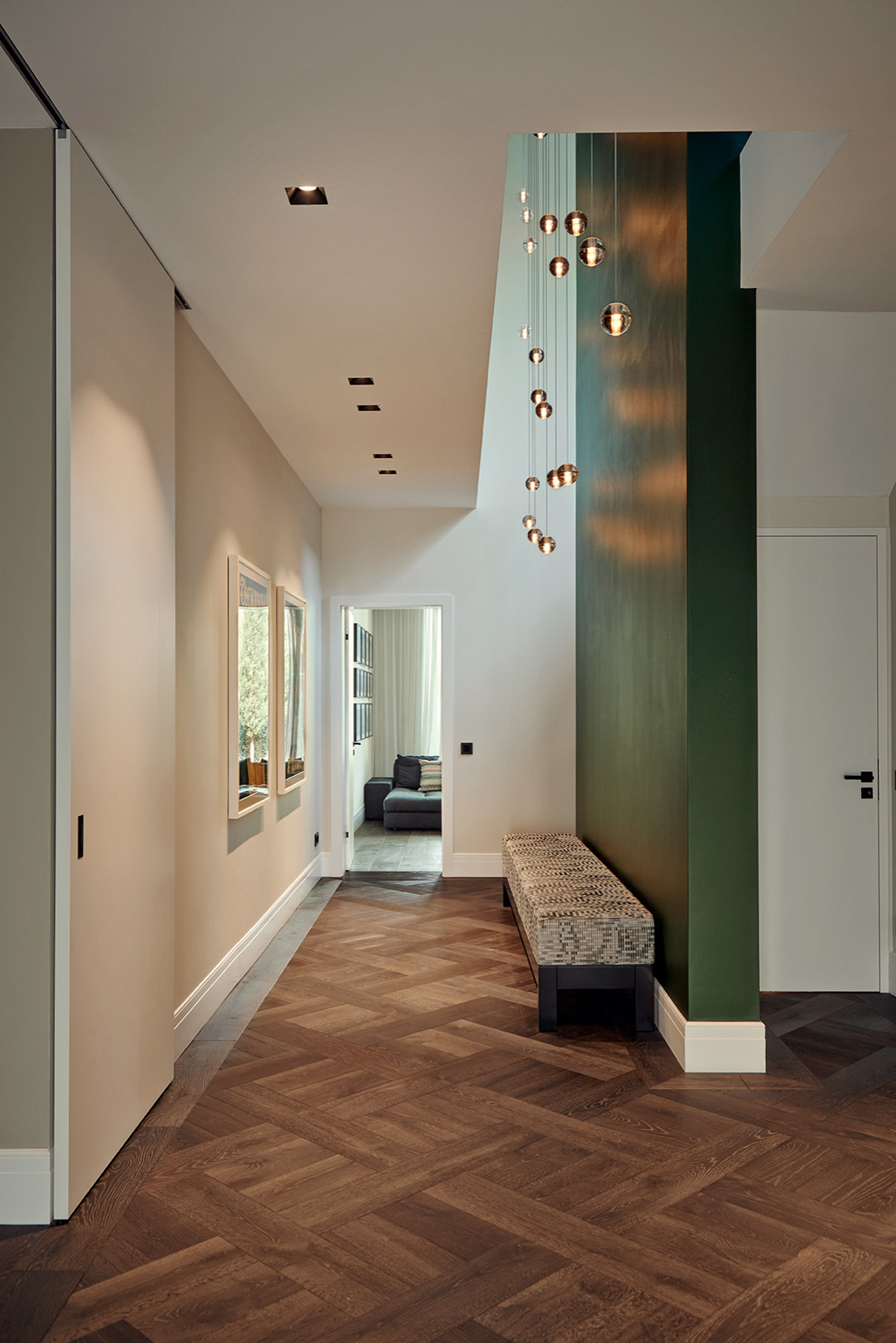 7. Eindruck schinden. Ein Flur hat ja auch irgendwie repräsentative Funktion (es sei denn, der Gerichtsvollzieher steht vor der Tür). Es darf also ruhig geklotzt werden: mit eindrucksvollen Bildern, schönen Leuchten, einer stimmigen Wandfarbe, exquisiten Möbeln. Konzept in diesem Flur, den Rooom.biz Ihre Agentin für Schönheit gestaltet hat.