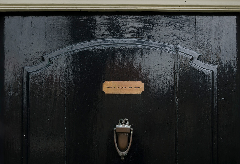 Die Inschrift auf dem Schildchen „Ceci n’est pas une porte” („Dies ist keine Tür“) ist eine Hommage an den surrealistischen belgischen Maler René Magritte und sein wohl berühmtestes Werk „La trahison des images“ („Der Verrat der Bilder“).