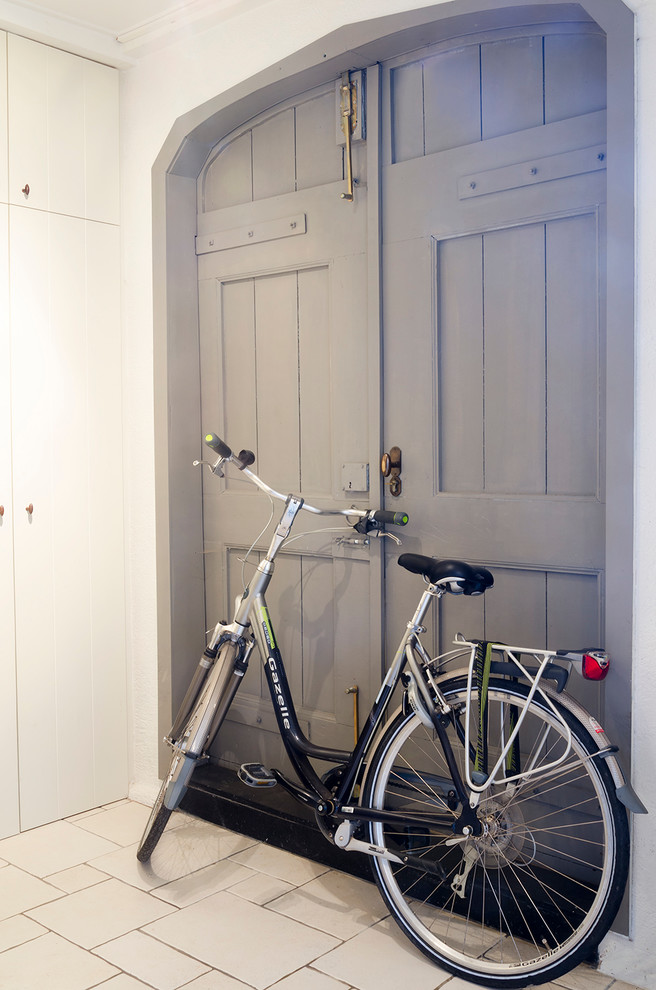 VORHER-NACHHER: Die Klöntür stammt aus der Erbauungszeit und ist typisch für die belgisch-niederländische Architektur. Für einen frischen Look hat das Paar Tür und Fensterrahmen innen weiß lackiert. Die schlichten, schwarzen Windlichter in Form von Laternen passen zur schwarzweißen Farbpalette.