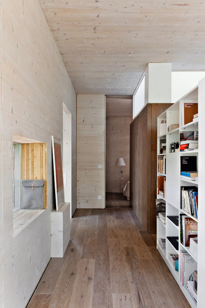 Eine Besonderheit dieses Projektes stellt vor allem die innovative Materialwahl und seine Bauweise aus reinem Massivholz dar. „Als gelernter Maurer habe ich lange gebraucht, um zum Holz zu finden. Bisher war der Holzbau sehr traditionell, zu rustikal und meist auch zu dunkel. Ganz anders hingegen der moderne Holzbau, insbesondere der Massivholzbau“, sagt Danke. Die Wände und Decken sind aus großflächigen Bauteilen aus Weißtanne und haben eine