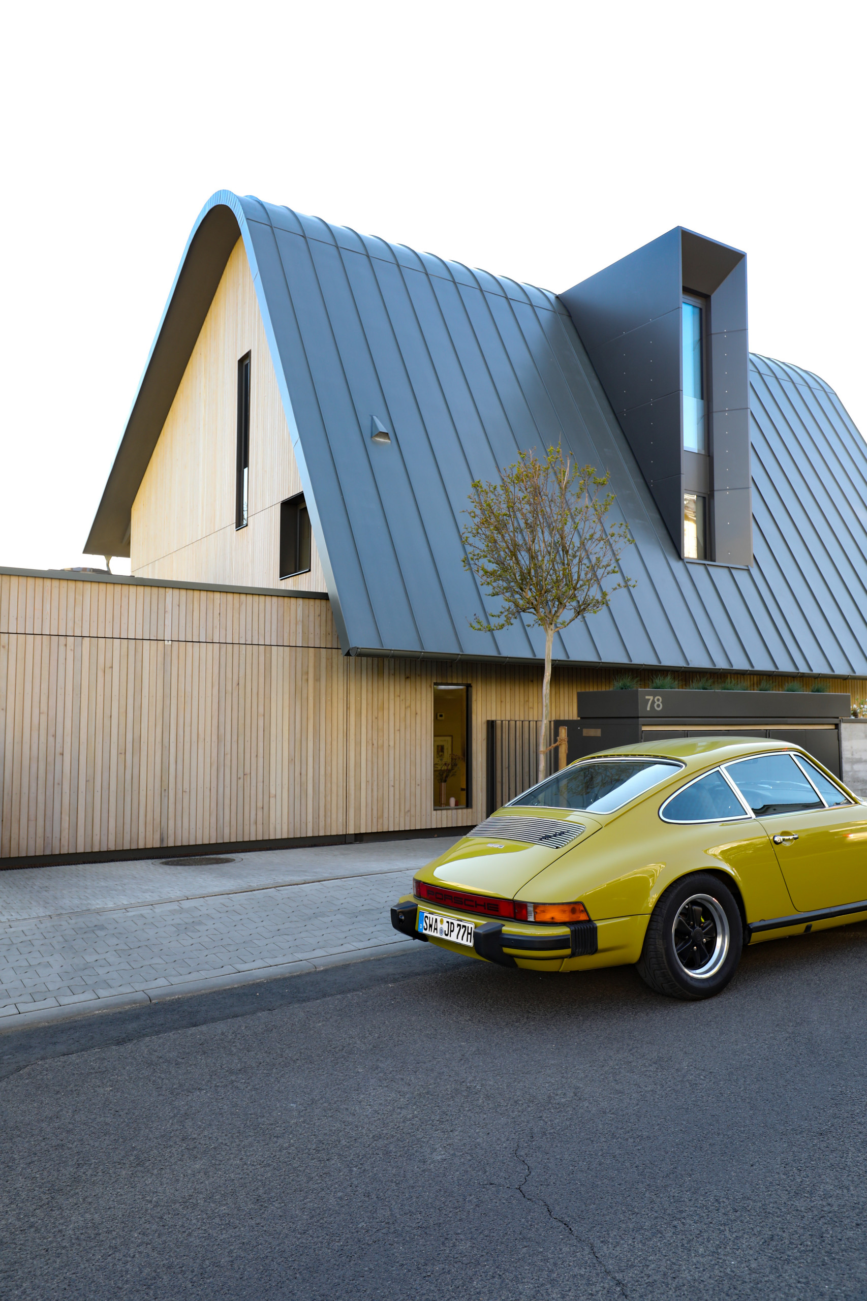 „Ich möchte mit jedem Projekt gute Architektur schaffen und vor allem Diskussionen über die von mir gebauten Häuser anregen. Die Häuser dürfen durchaus polarisieren, solange sie zum Nachdenken anregen“, erklärt der Architekt seinen Ansatz. Das Satteldach formte er im First rund und die Gauben zog er lang. Beides konnte er beim Bauamt durchsetzen. „Die Gaube ist nur entstanden, weil die eigentlich vorgesehene Glasscheibe im Dach einfach zu teuer war“, verrät Neugebauer.