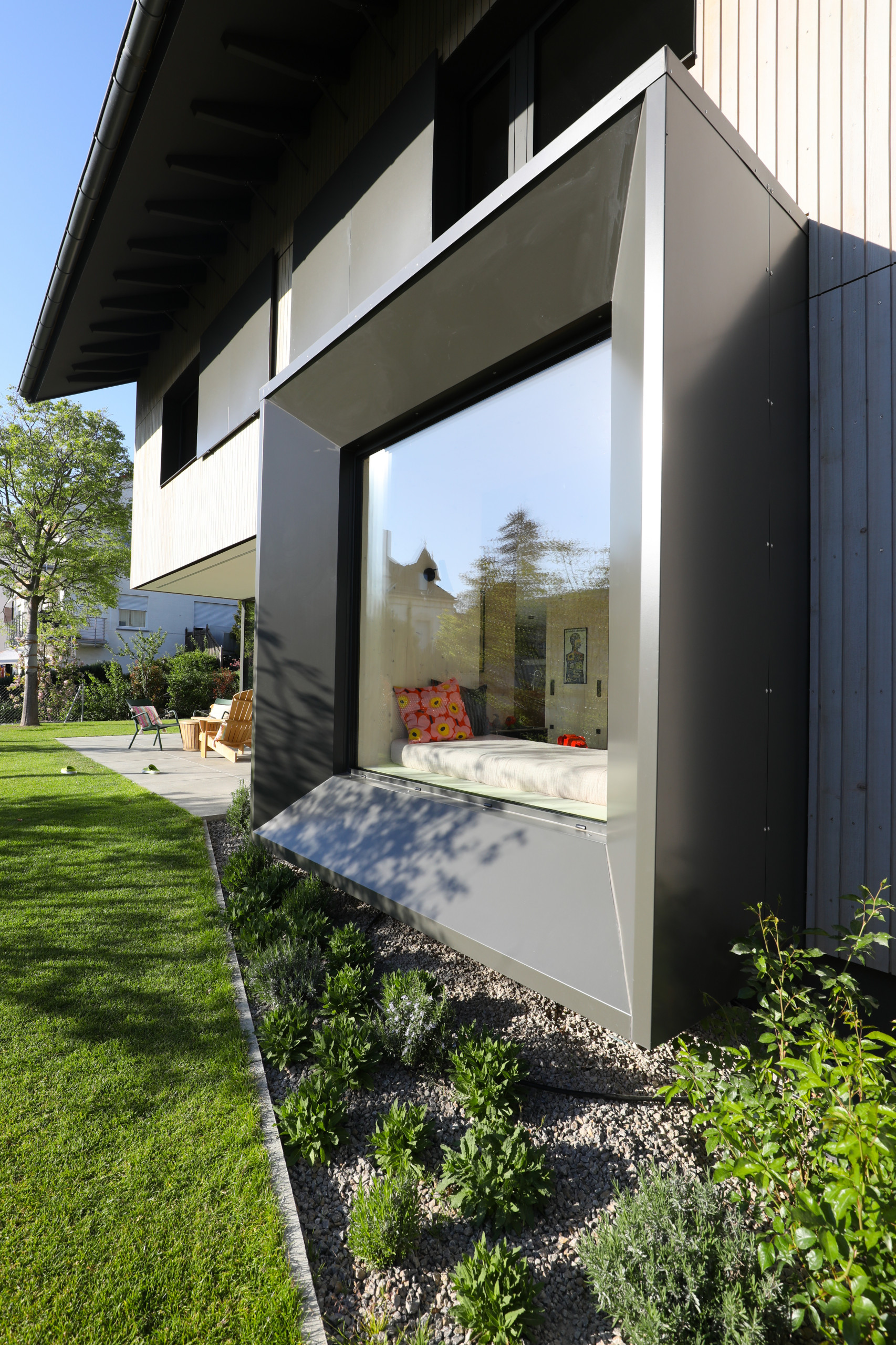 Er hat für Ersatz gesorgt. Die Gartengestaltung gehört für ihn selbstverständlich zu einem Projekt dazu. So verwundert es auch nicht, dass die Fenster mehr wie die Rahmen eines Gemäldes denn wie Fenster wirken.