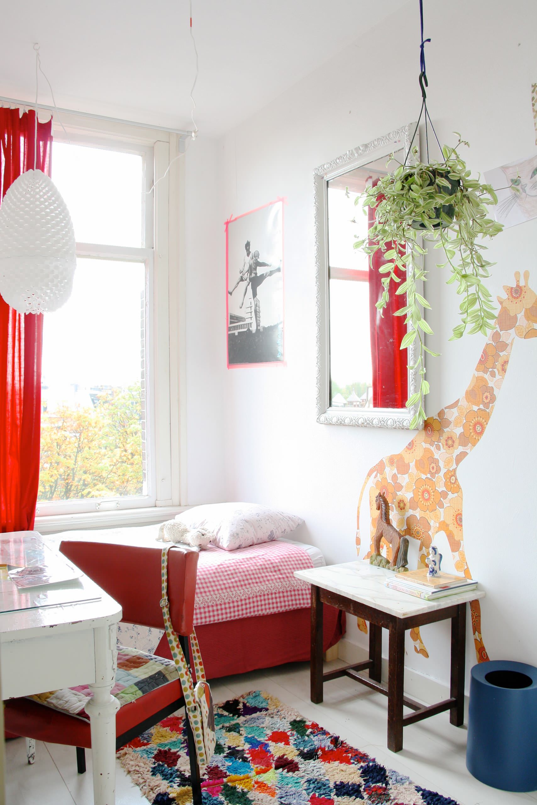 Was Kinder lieben? Buntes, Knalliges und Verspieltes! Mit Wandtattoos können Sie ruckzuck wilde Tiere ins Kinderzimmer bringen. Diese Giraffe zum Beispiel ist von Inke und stakst gerade durch ein fröhliches Spielparadies in Amsterdam.