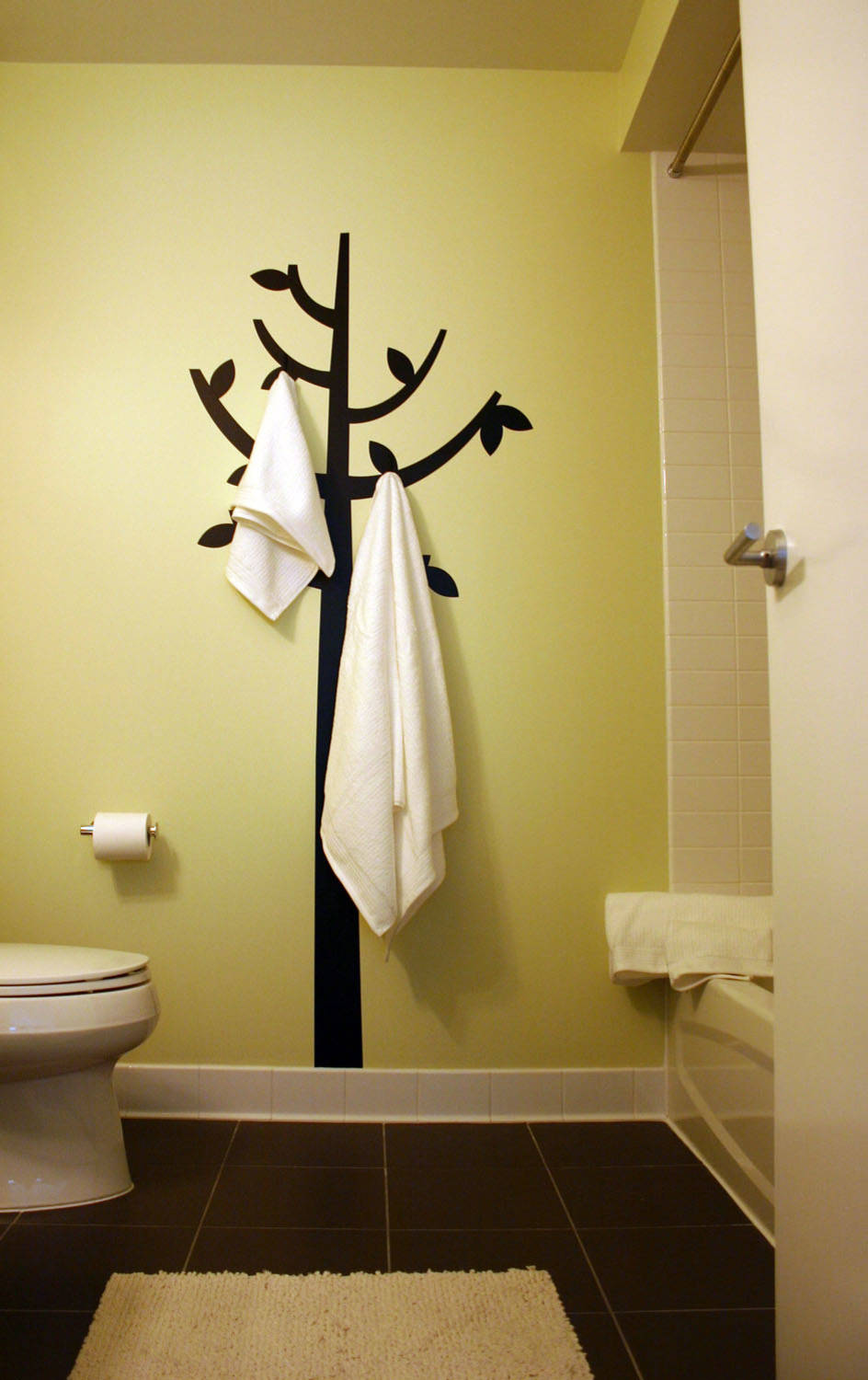 Eine witzige Idee die Handtücher im Bad aufzuhängen, ist dieses Wandtattoo von Ferm Living. Aber auch Mäntel, Schals und Hüte lassen sich so mit einer Prise Humor im Flur aufbewahren.