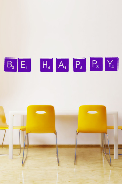 Scrabble kennt jeder! Mit den XXL-Buchstaben von Walltat wird die ganze Wand zum Spielfeld. Quadratische Klebefolien wurden hier motivierend zu „be happy“ zusammengesetzt. Aber auch andere Buchstabenkombinationen können so Wände zum sprechen bringen.