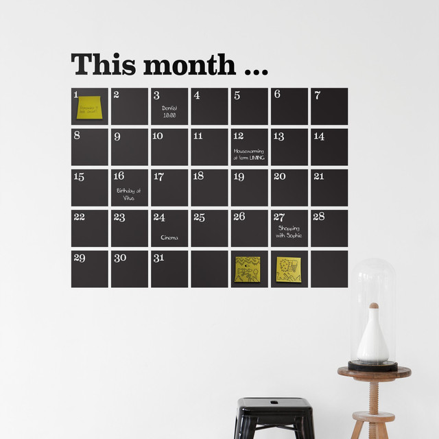 Der selbstklebende „Wandsticker-Kalender“ des dänischen Herstellers Ferm Living besteht aus mit Kreide beschriftbarem Vinyl. Da die Folie rückstandslos abziehbar ist, kann er Wand, Möbel oder Spiegel zieren. Im Paket inklusive: die gelben Post-Its für weitere Notizen.