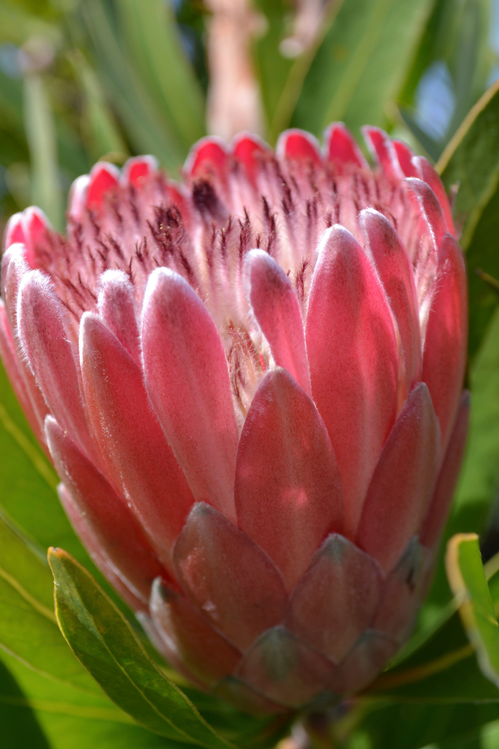 Proteen sind immergrüne Sträucher, die zur Kapflora gehören. Sie wachsen je nach Art zwischen ein und zehn Metern hoch. Die Blüte, die Disteln ähnelt, wird bis zu 30 Zentimeter groß – kein Wunder, daß sie bei Floristen so begehrt ist.
