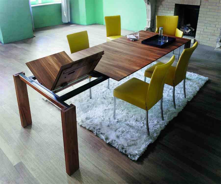 Haben Sie viele Gäste, so reicht der kleine Esstisch meist nicht mehr aus. Ein Tisch, den man variabel vergrößern kann, stellt hier die ideale Lösung dar. Vergrößerbare Tische gibt es in verschiedenen Varianten: zum herausziehen oder ausklappen. Bei obiger Variante werden mittels Schienensystem der Tisch verbreitert und ein Stück Tischplatte dazwischen gelegt – eine clevere und charmante Lösung ohne viel Aufwand!