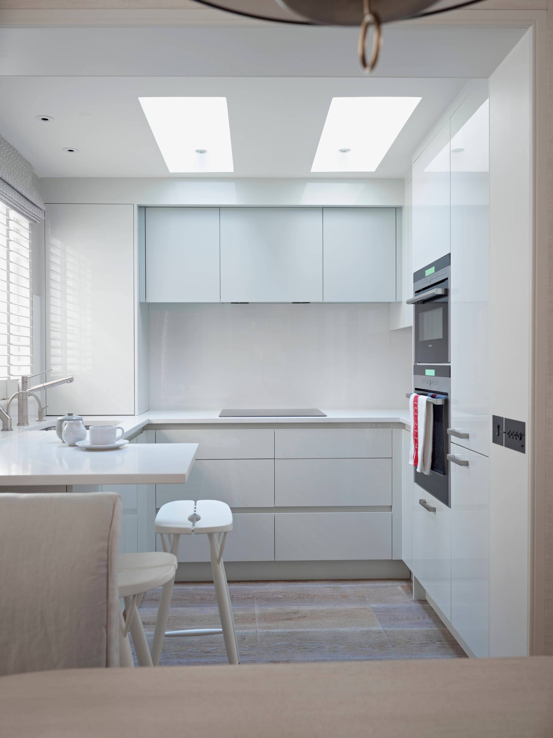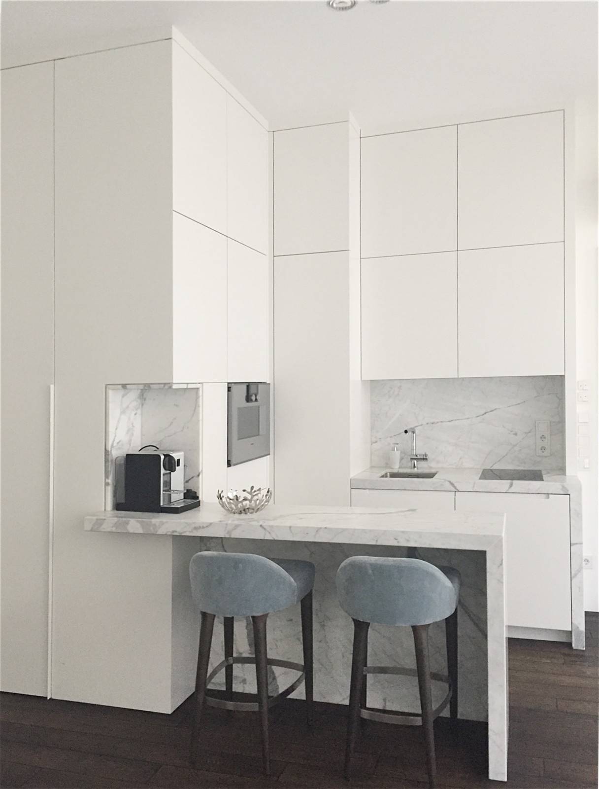 4. Eine weiße Küche verschmilzt mit der Wand