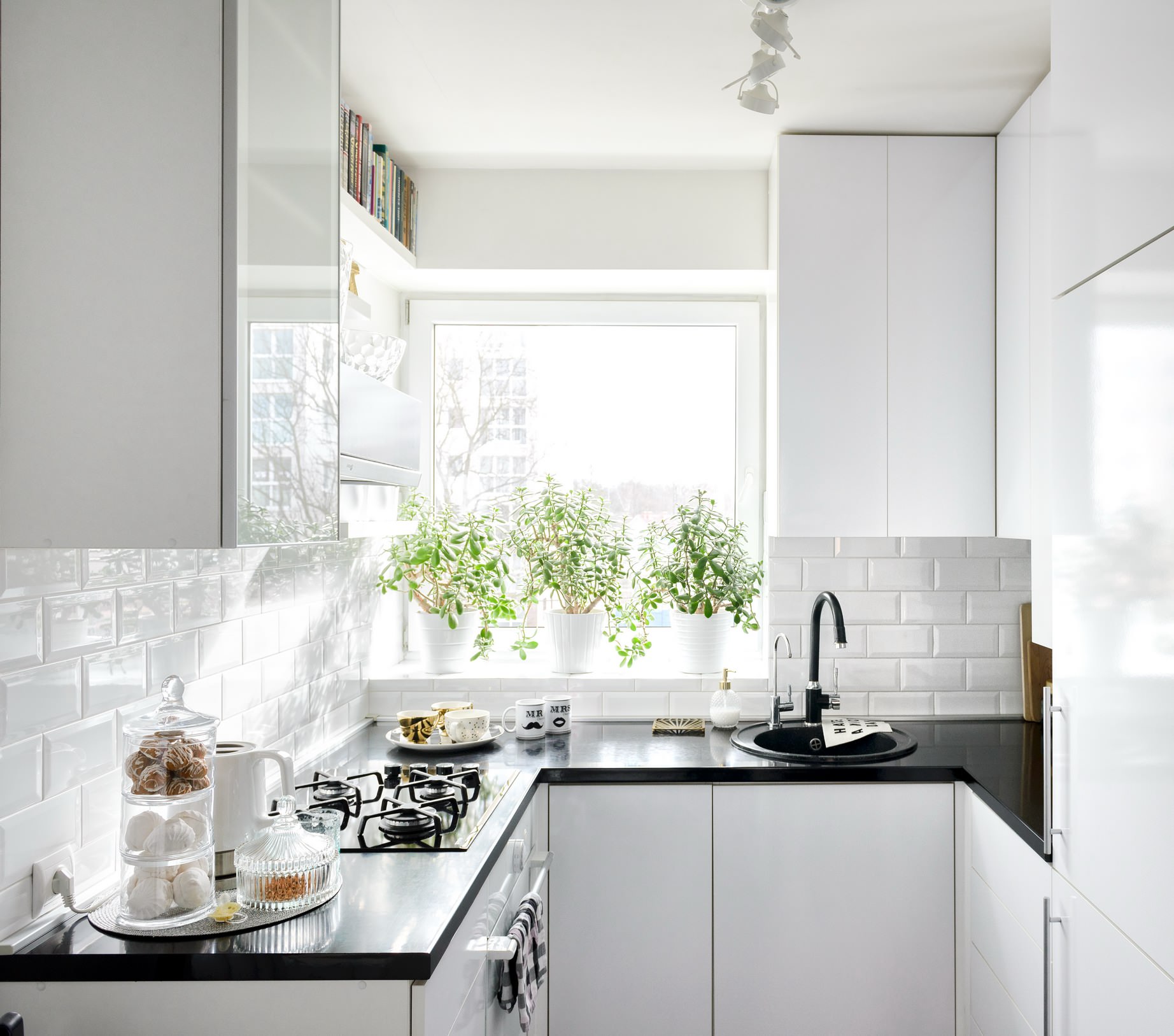10. Mini-Küche mit Schwarzweiß-Kontrast
