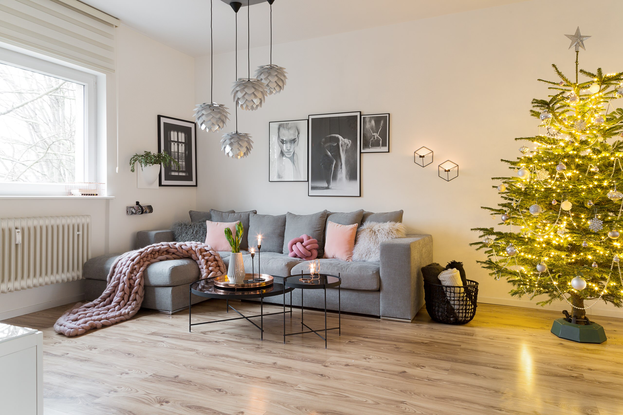 7. Skandinavische Weihnachten in Berlin. Was wäre Weihnachten ohne Lichterketten? In diesem Zuhause einer Interior-Instagramerin funkelt der Christbaum wunderschön. Festgehalten von: Maike Wagner Fotografie