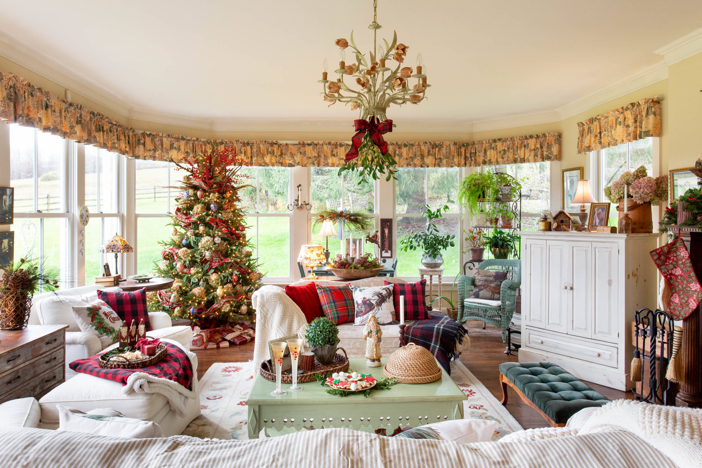 12. Üppig geschmückt. In diesem Wohnzimmer wurde ordentlich in die Weihnachtsdeko-Kiste gegriffen. Jetzt nur noch reichlich Gebäck und köstlicher Glühwein – und das Christkind kann kommen! Fotografiert von Rikki Snyder