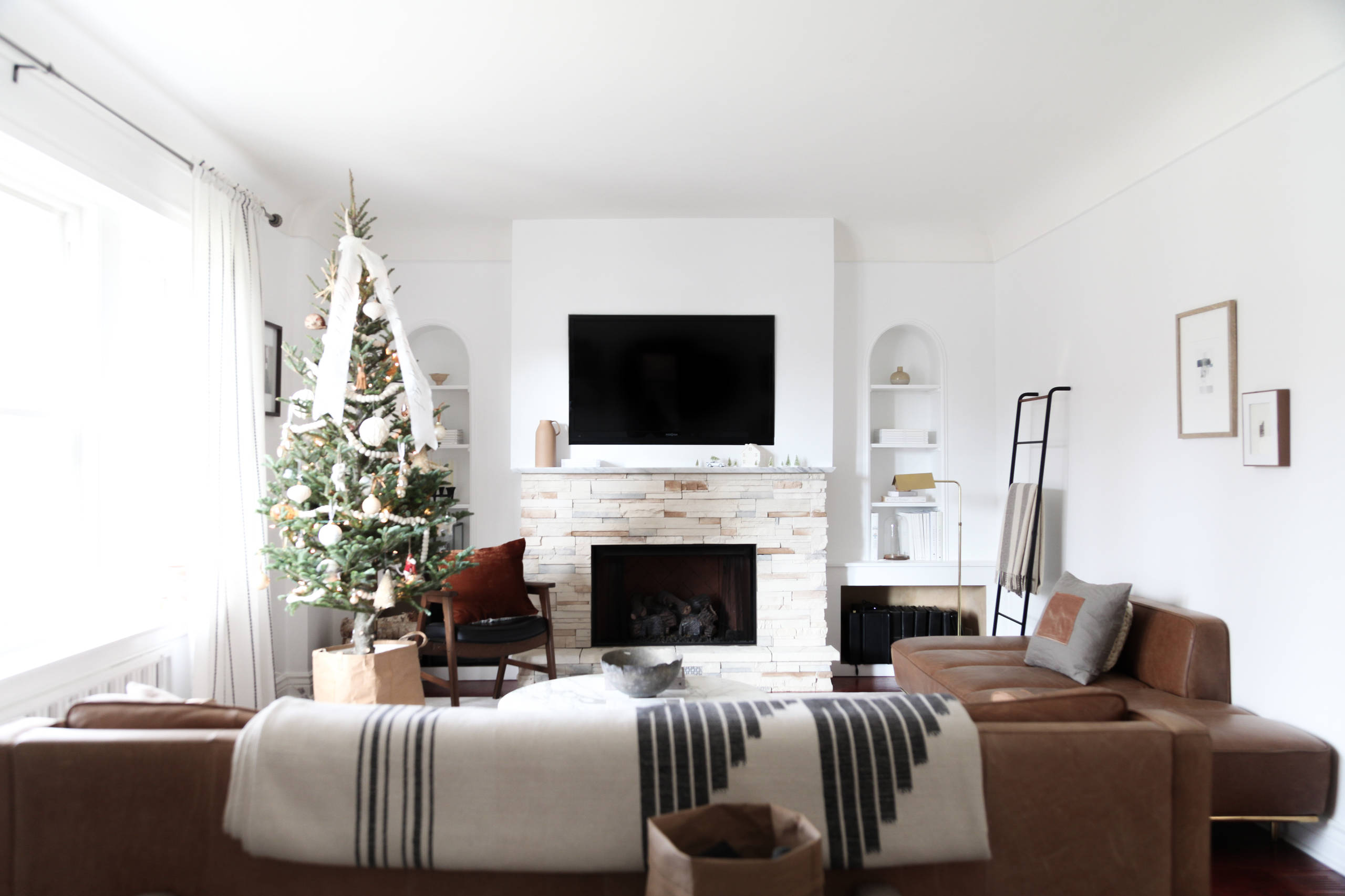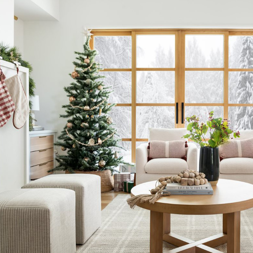 18. Schlicht und ergreifend. Dieses Wohnzimmer kommt Weihnachten ebenfalls ohne den üblichen Glanz und Glitzer aus. Festgehalten von: Rachel Loewen Photography
