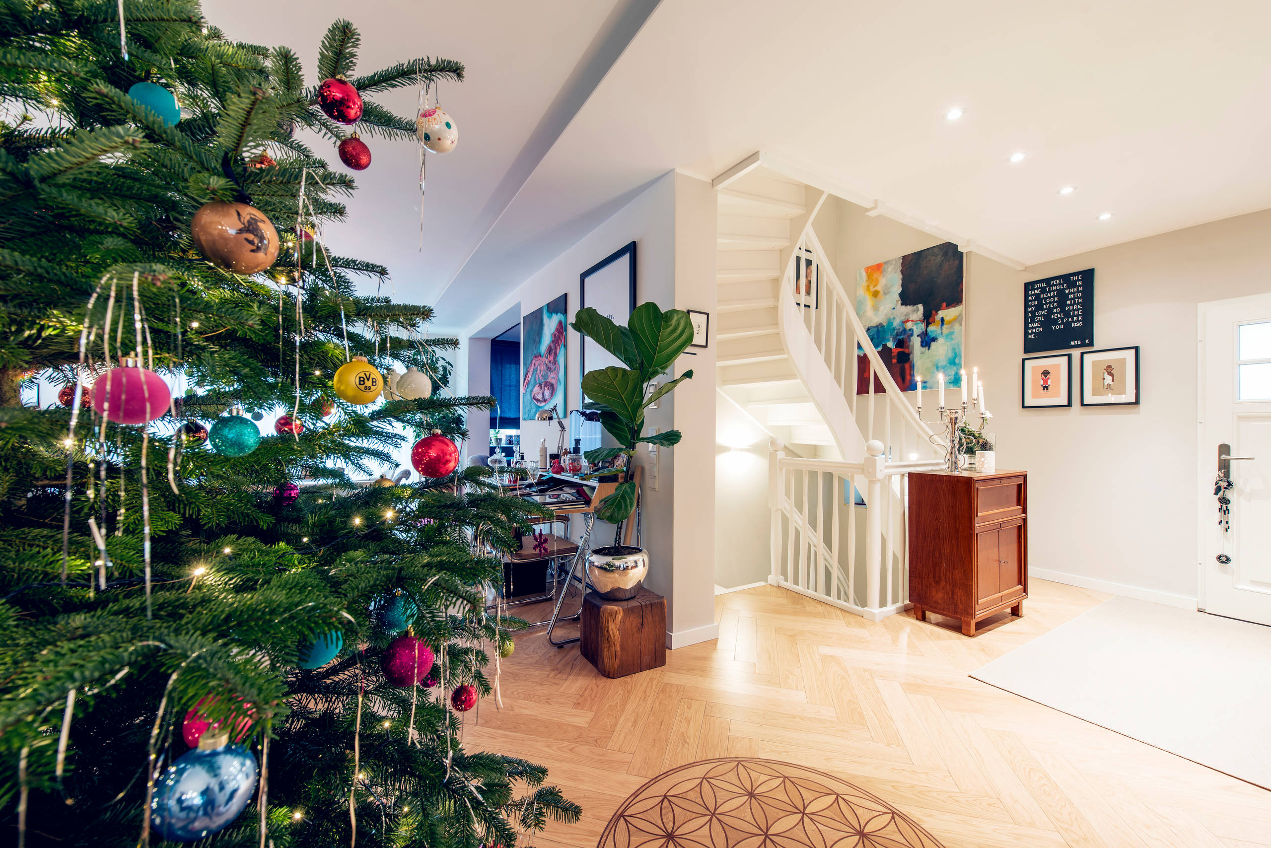 10. Hängt der Baum gerade? Einmal im Jahr greifen selbst die Puristen zur Goldkugel. An Weihnachten steht die Welt manchmal einfach Kopf – oder lässt den Christbaum von der Decke hängen. Gesehen bei: Studio Exedra
