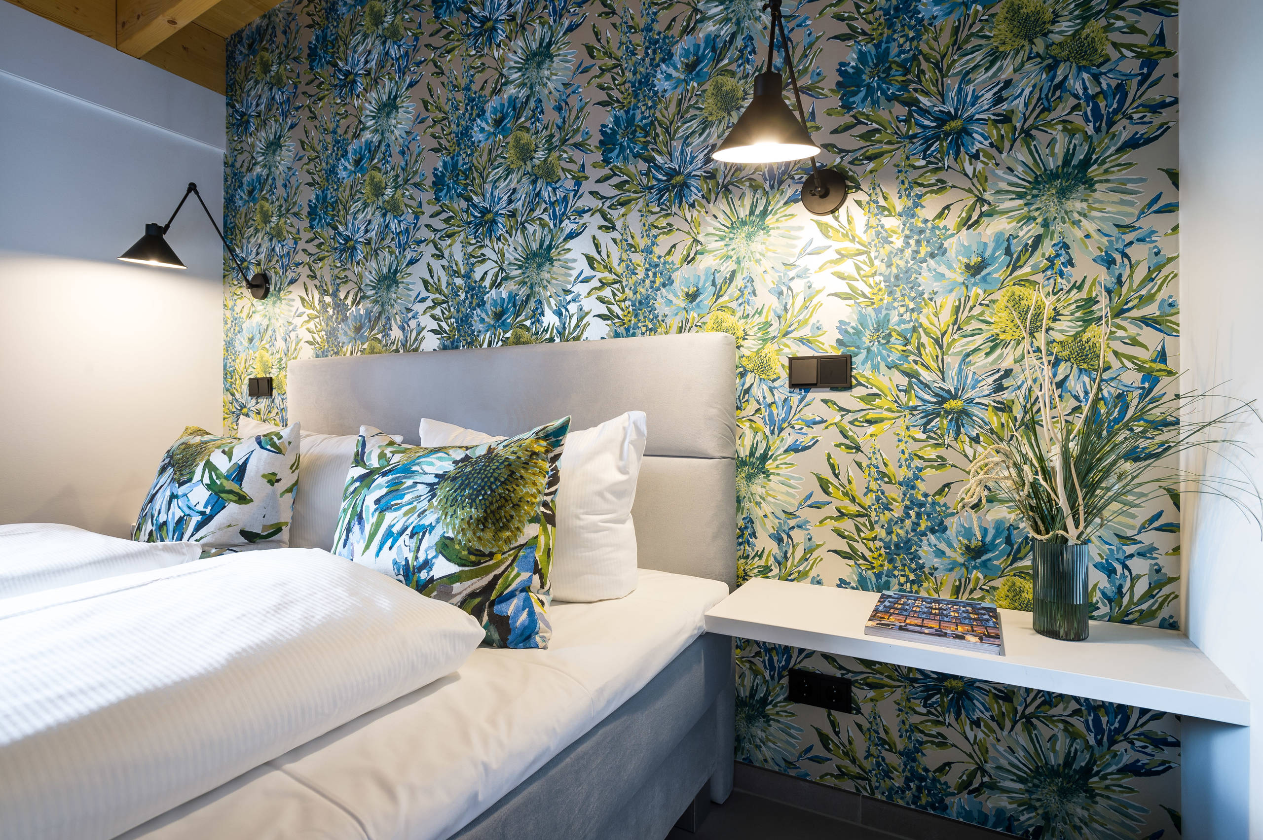Sie sind in Sachen Tapetenauswahl noch unschlüssig oder möchten öfter mal das Motiv wechseln? Dann tapezieren Sie doch einfach ein paar Holzbretter oder (oder bespannen eine Leinwand mit einem schönen Stoff) und lehnen diese lässig an die Wand.