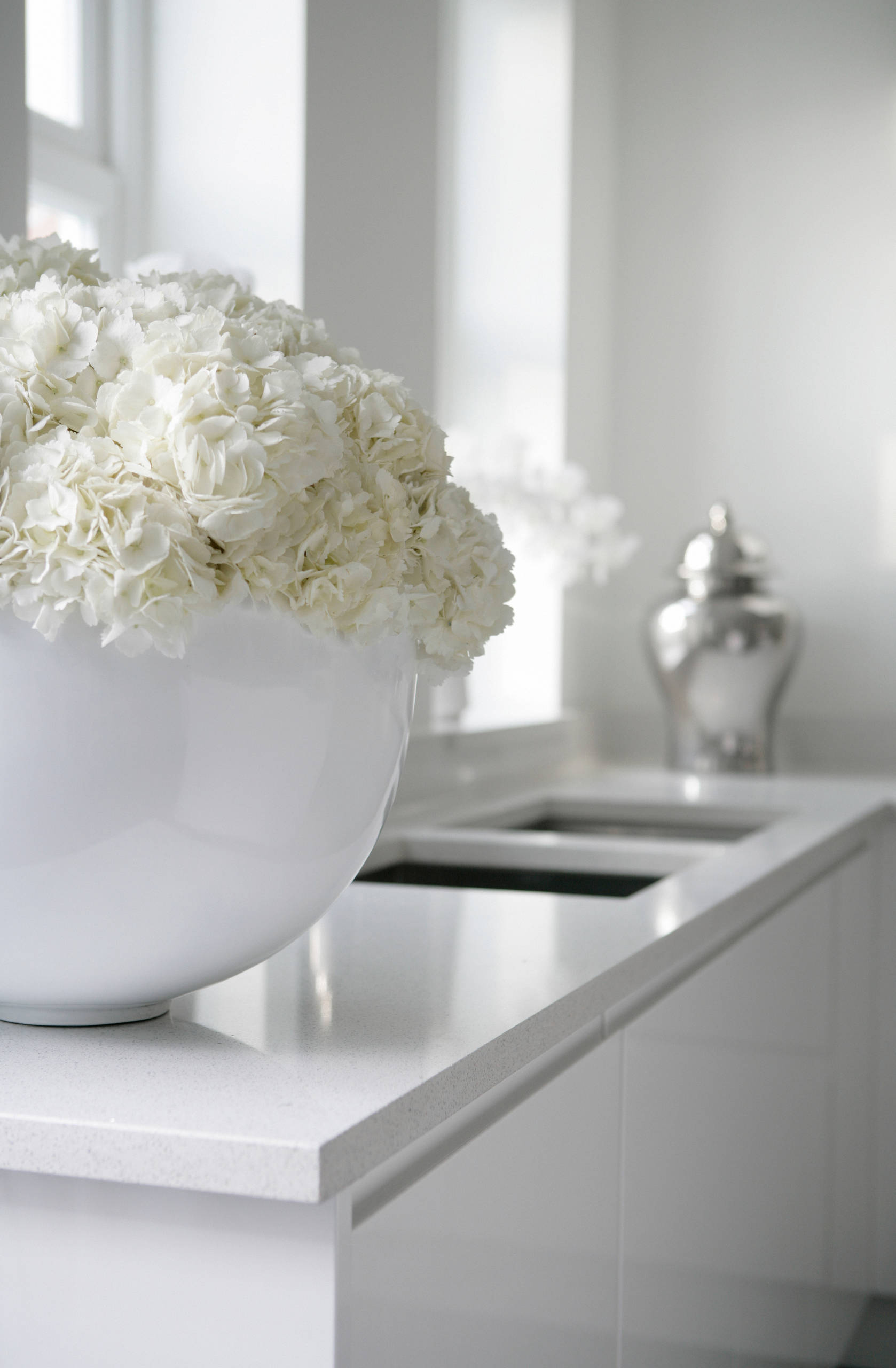 Ein duftender Pfingstrosenstrauß oder frisch gepflückte Blumen aus dem Garten betören nicht nur den Geruchssinn. Üppig arrangierte Bouquets in dekorativen Vasen sind auch ein edler Augenschmaus, vor allem Ton in Ton wie hier.