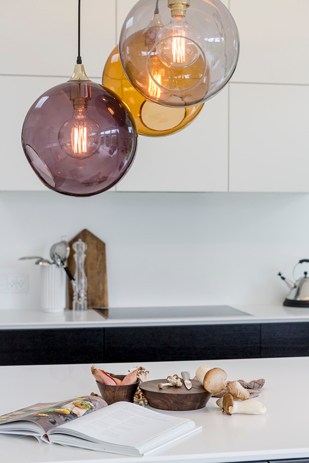 Oft weiß man kaum, was da eigentlich in der Küche an der Decke hängt, so unauffällig und funktional sind Küchenleuchten. Wählen Sie stattdessen doch ein ähnlich auffälliges Stück, wie Sie es ins Wohnzimmer hängen würden. Pendelleuchten mit großen Schirmen oder ausgefallene Designs sorgen ebenso wie pompöse Lüster für Glamour über dem Küchentisch.