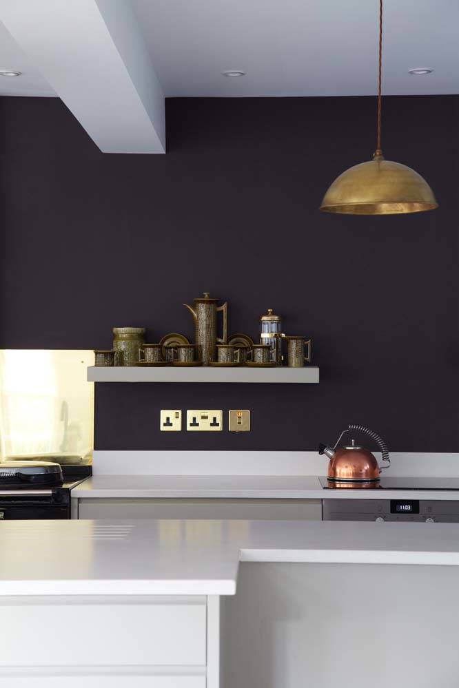 Was hat mehr Glamour als leicht schimmernde und glänzende Oberflächen? Gold-, silber- oder kupferfarbene Schalter und Steckdosen sorgen für Glanzpunkte an der Küchenrückwand. Vor dunklen Wänden wirken sie besonders imposant. Achten Sie darauf, nur einige wenige Akzente zu setzen, damit das Ganze nicht überladen wirkt.