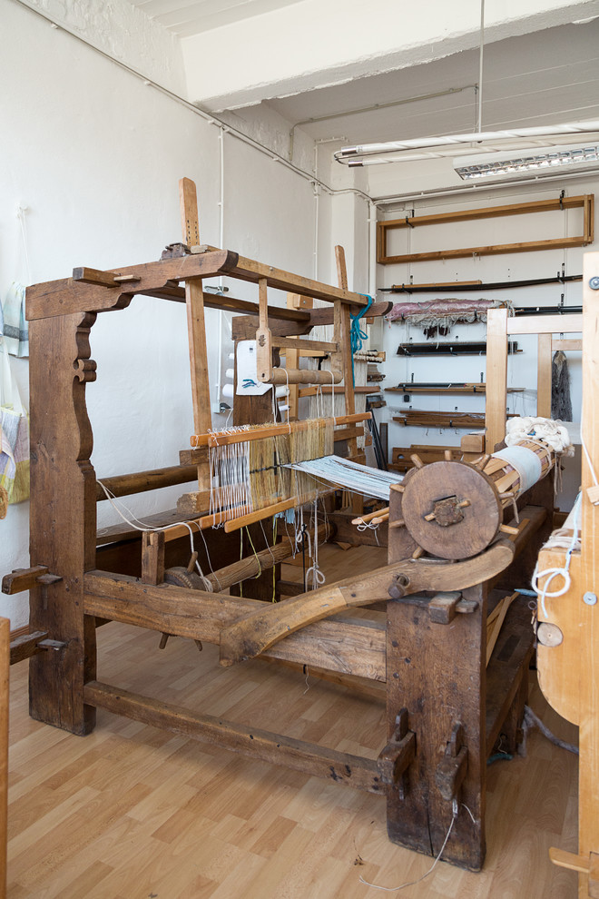 Der älteste Webstuhl, ein 250 Jahre altes Modell aus Eiche, hebt sich durch seine schwungvoll verzierten Holzbalken von den jüngeren ab. „Die grundsätzliche Bau- und Funktionsweise der Webstühle hat sich aber nicht wirklich verändert”, so Kleßmann. „Nur die Materialien sind heute leichter und es wird mehr Metall verwendet.”