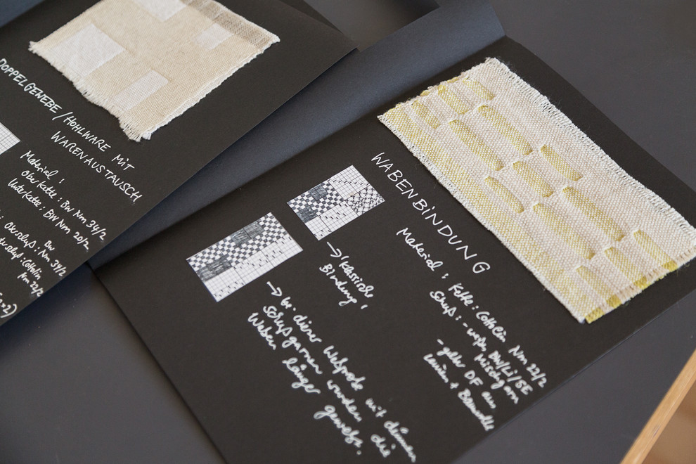 Alte Bindungsbücher, teils um 1850 verfasst, in denen viele dieser Kombinationen für verschiedene Muster aufgezeichnet wurden, gehören ebenso zu Kleßmanns Inspirationsquellen wie das Reisen oder Besuche in Textilarchiven und Museen.