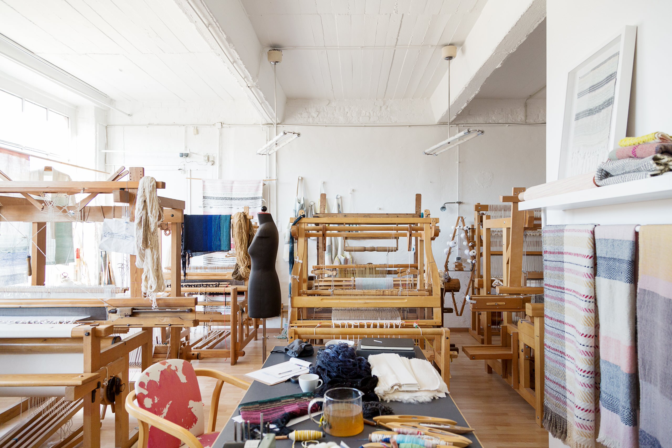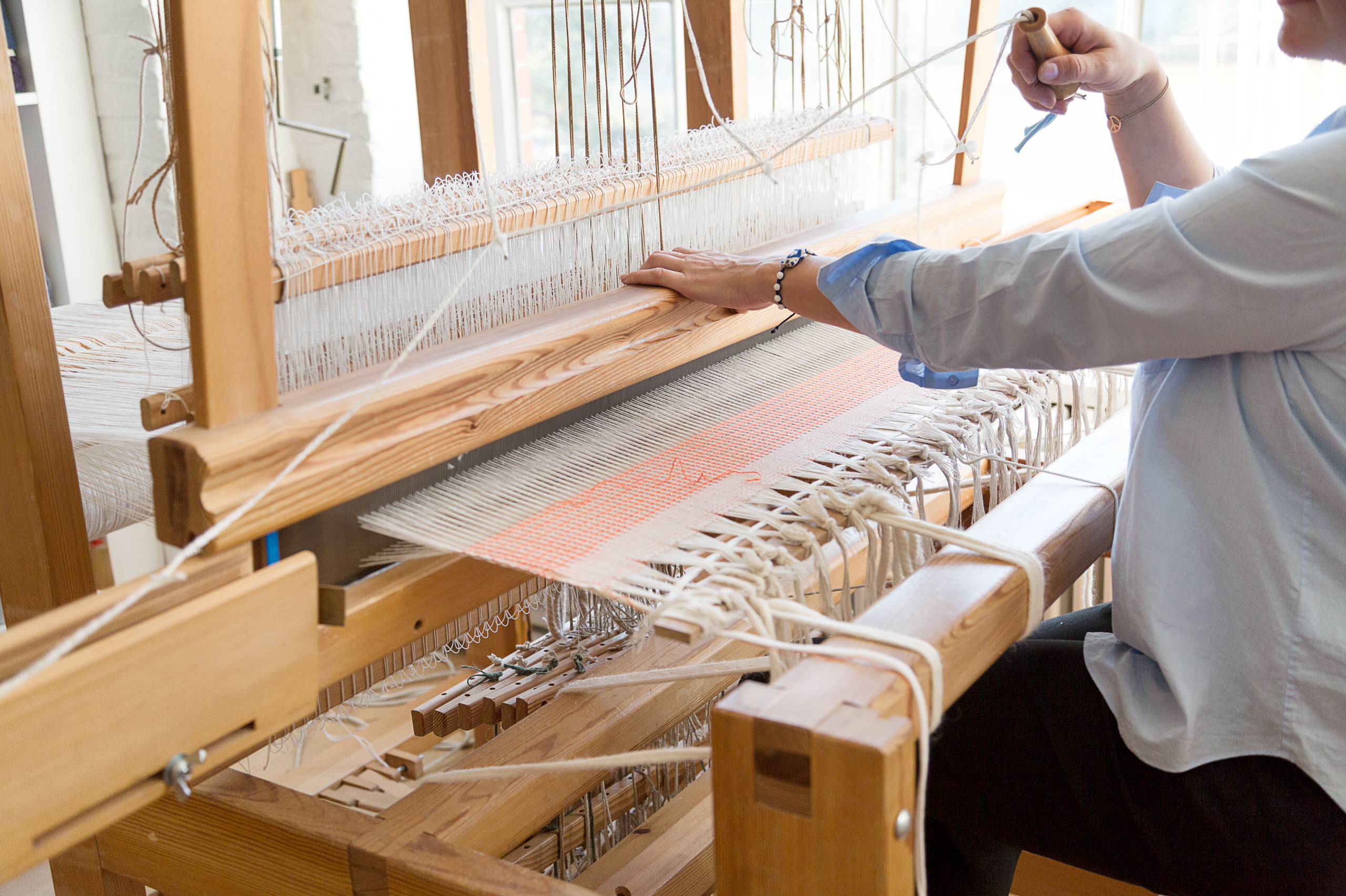 Hier entstehen Stoffe, geprägt von uralter Tradition, skandinavischem Design und dem beruhigenden Rhythmus des Webstuhls
