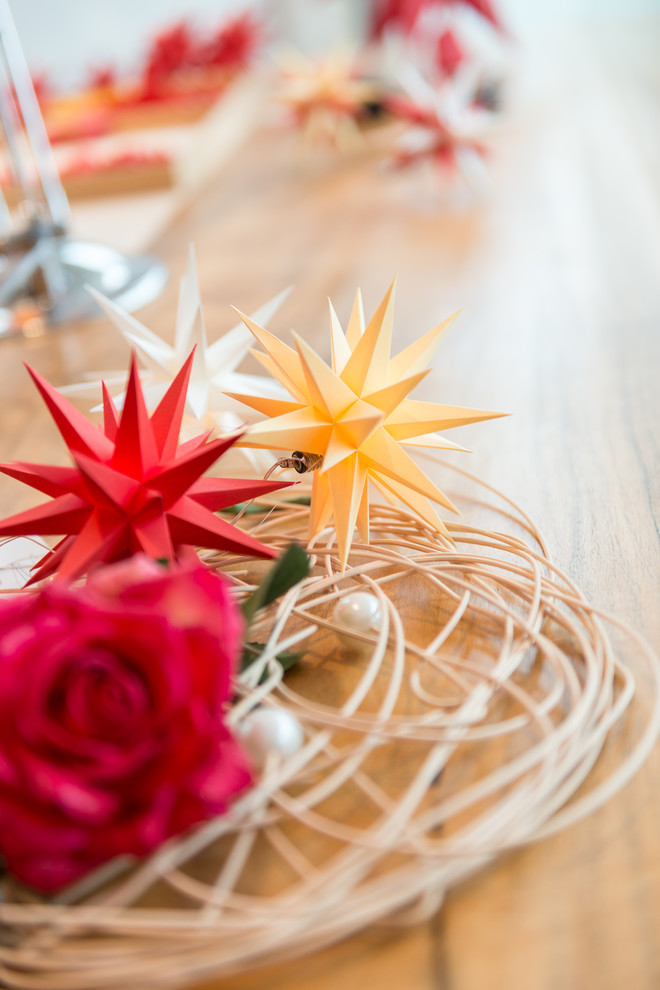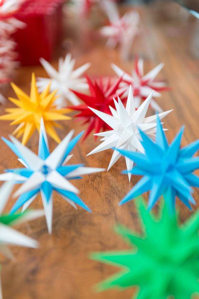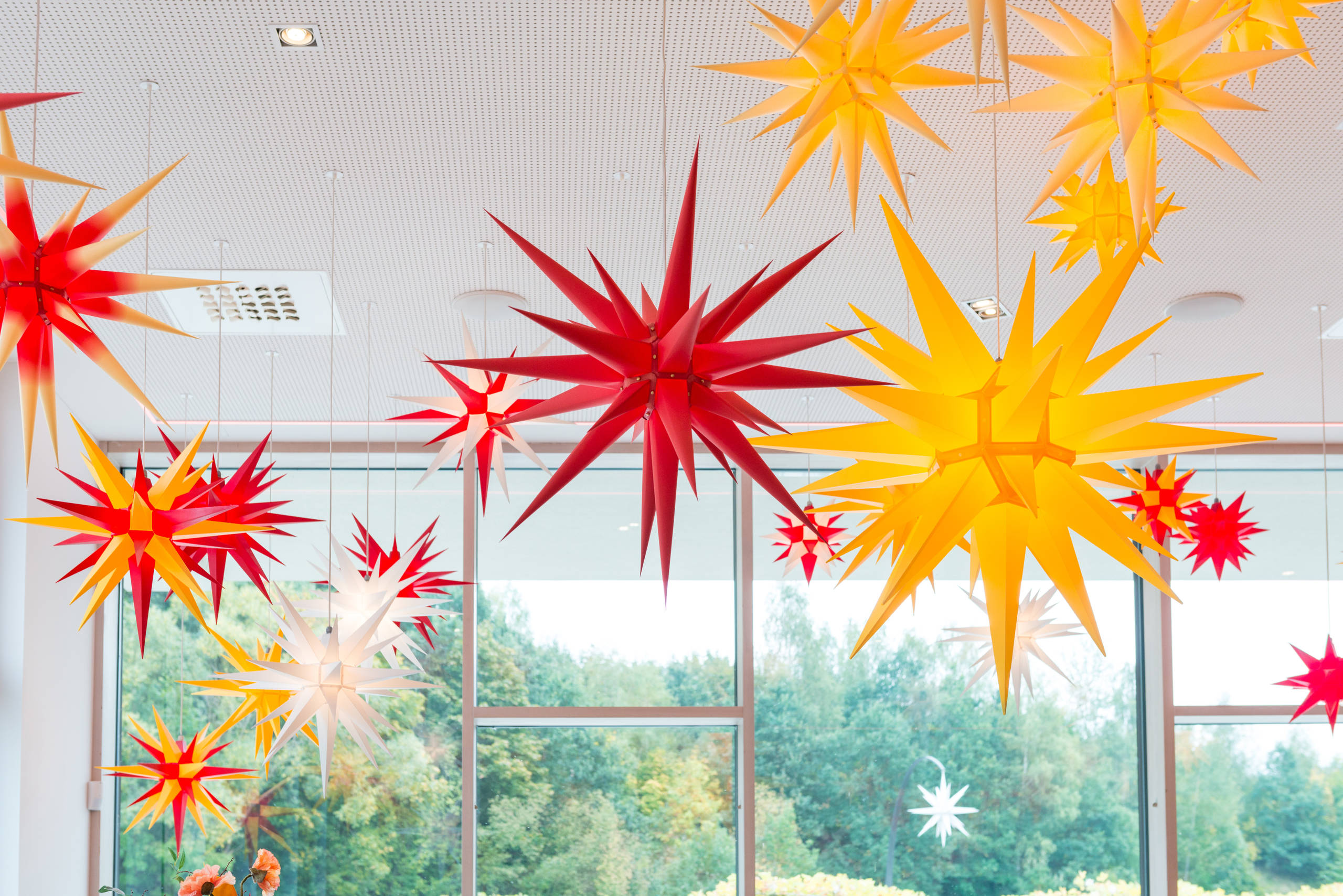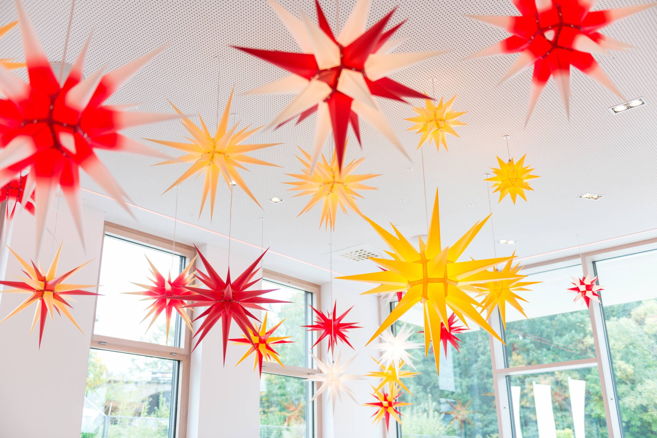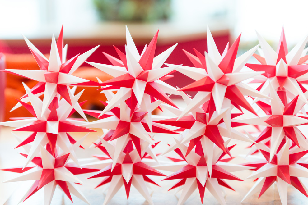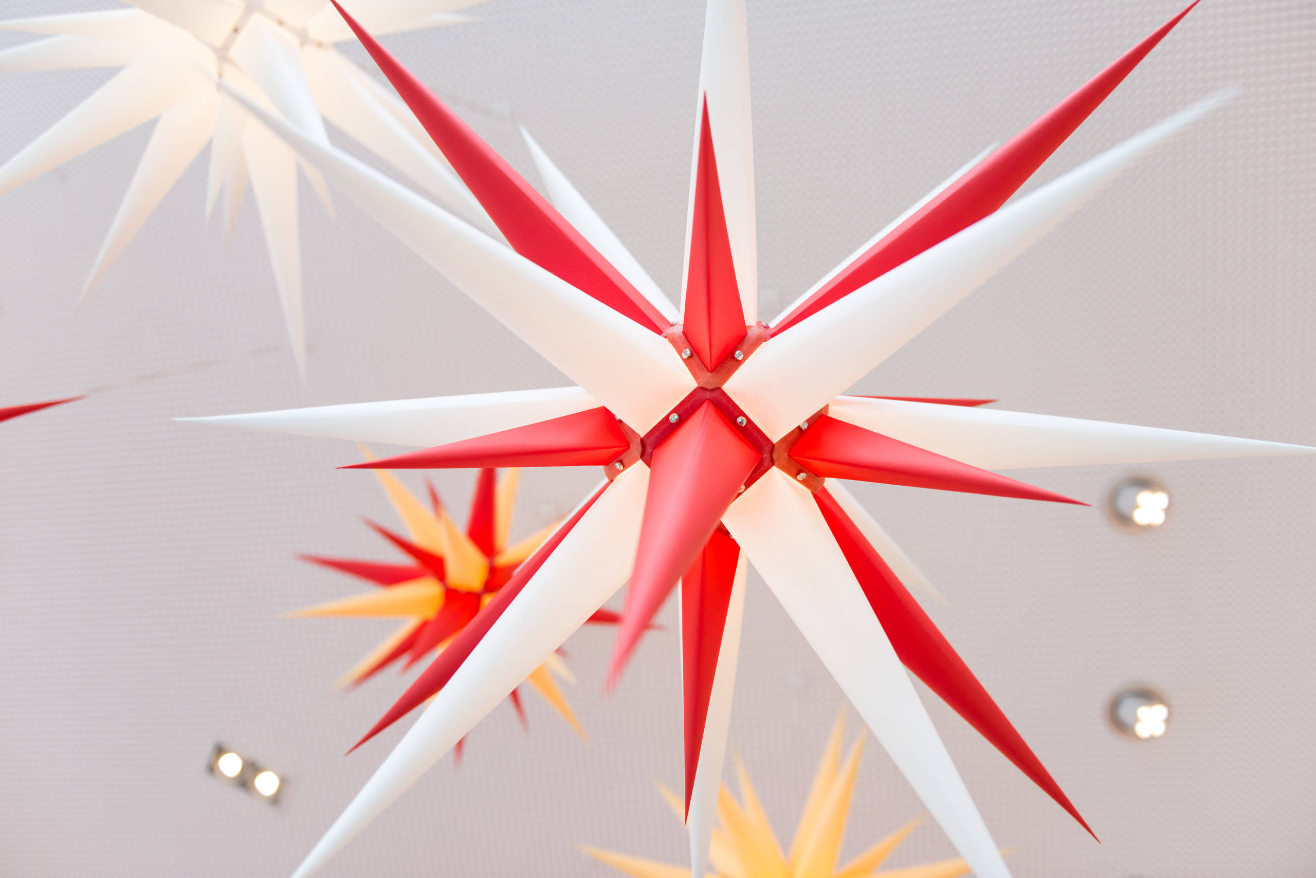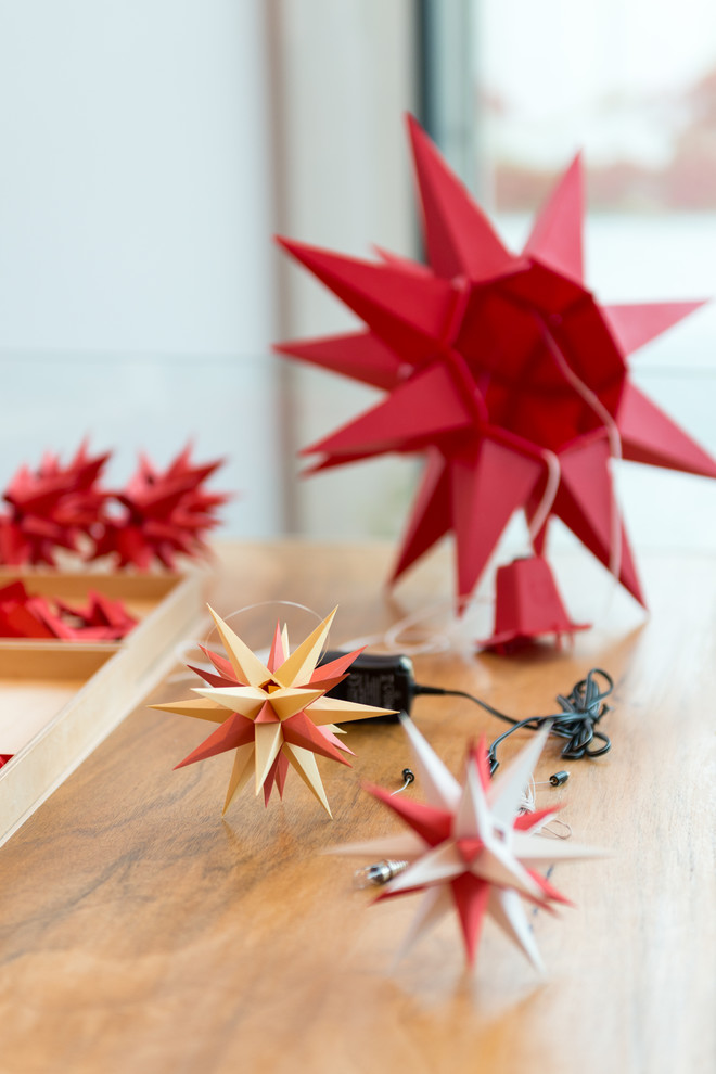 Wie genau entsteht nun ein solcher Stern? Unterschieden wird zwischen Sternen aus Papier für drinnen und solchen aus Kunststoff, die auch draußen angebracht werden können.