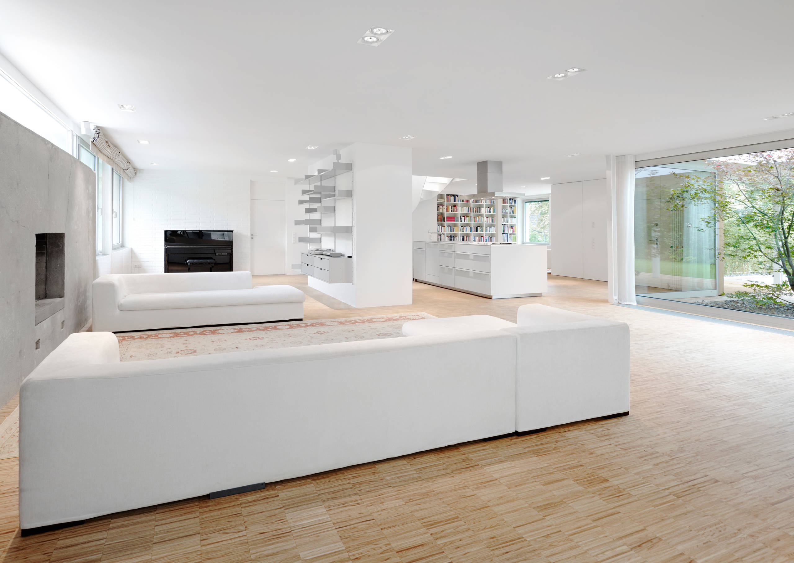 Nachdem die Treppe eingehängt und die Boxen auf dem Dach ausgebaut waren, zogen die Eigentümer auf das Dach. Zuvor hatten sie im Erdgeschoss gewohnt. „Die Bauherren mussten während der Bauzeit nur zweimal für rund drei Wochen in ein Hotel ziehen“, erzählt der Architekt. Besonders gefreut hat er sich, dass auch der Vorbesitzer die Umbaumaßnahmen gesehen und für gut befunden hat. Wilfried Hilger hatte nach dem Verkauf seines Hauses selbst noch in der Einliegerwohnung gewohnt.