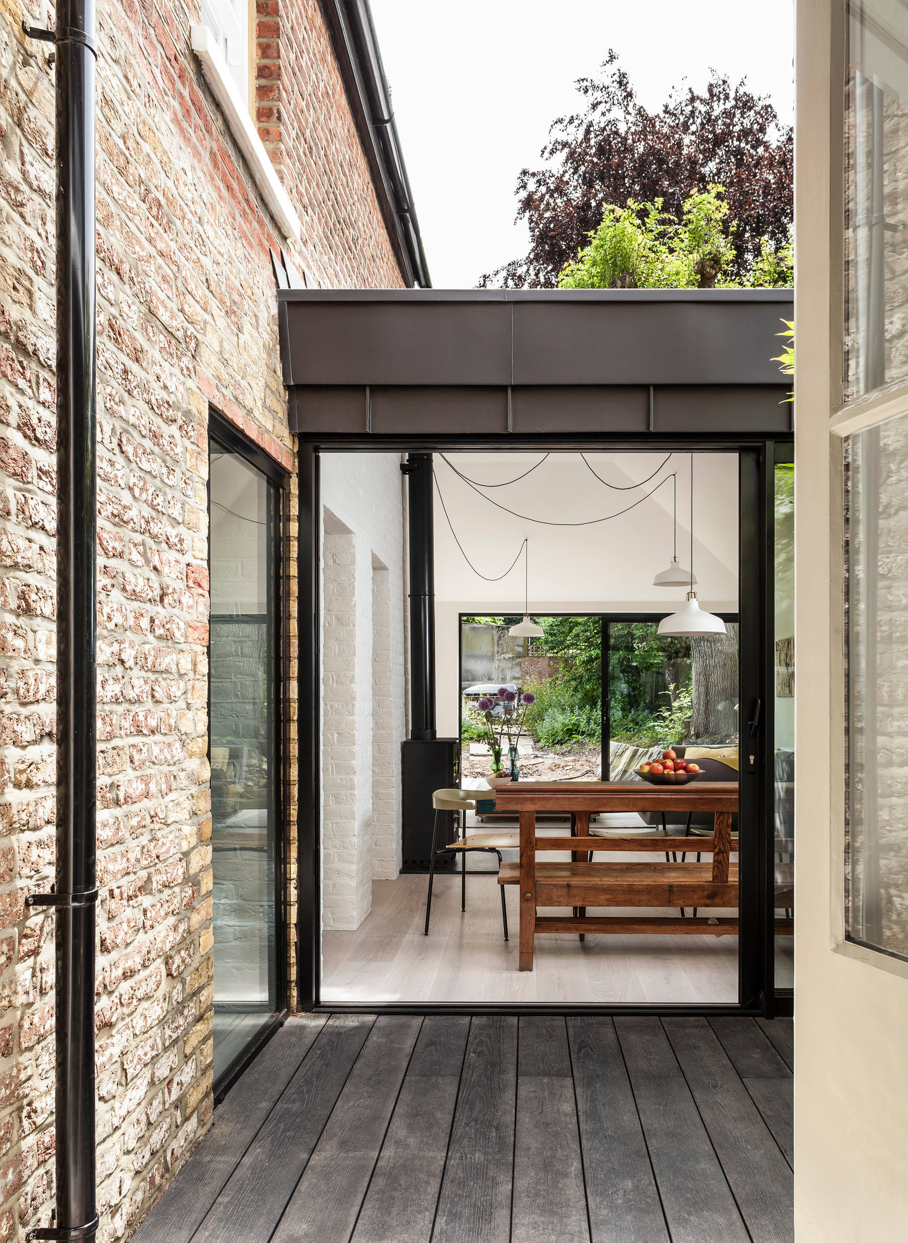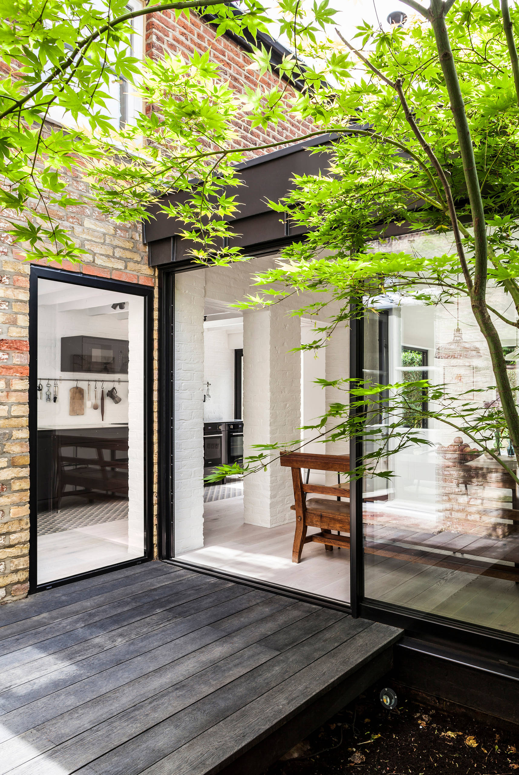 Als die heutigen Eigentümer dieses Haus im viktorianischen Stil in London kauften, war es ziemlich heruntergekommen. Für die dringend notwendige Komplettsanierung beauftragten sie die Architektinnen Fiona Kirkwood und Sophie McCarthy von Kirkwood McCarthy. Besonders ein Anbau hinter dem Haus sorgte für ein ganz neues Wohngefühl – mit einer großen, offenen Wohnküche und einer geschützten Terrasse. „Wir haben von Anfang an eng mit den Kunden zusammengearbeitet, um die für sie passende Raumaufteilung und Einrichtung zu finden“, erklärt Geschäftsführerin Fiona Kirkwood. „Den Grundriss hatten sie bereits grob entworfen, aber die Idee für die kleine Terrasse entstand erst während des Projekts.“