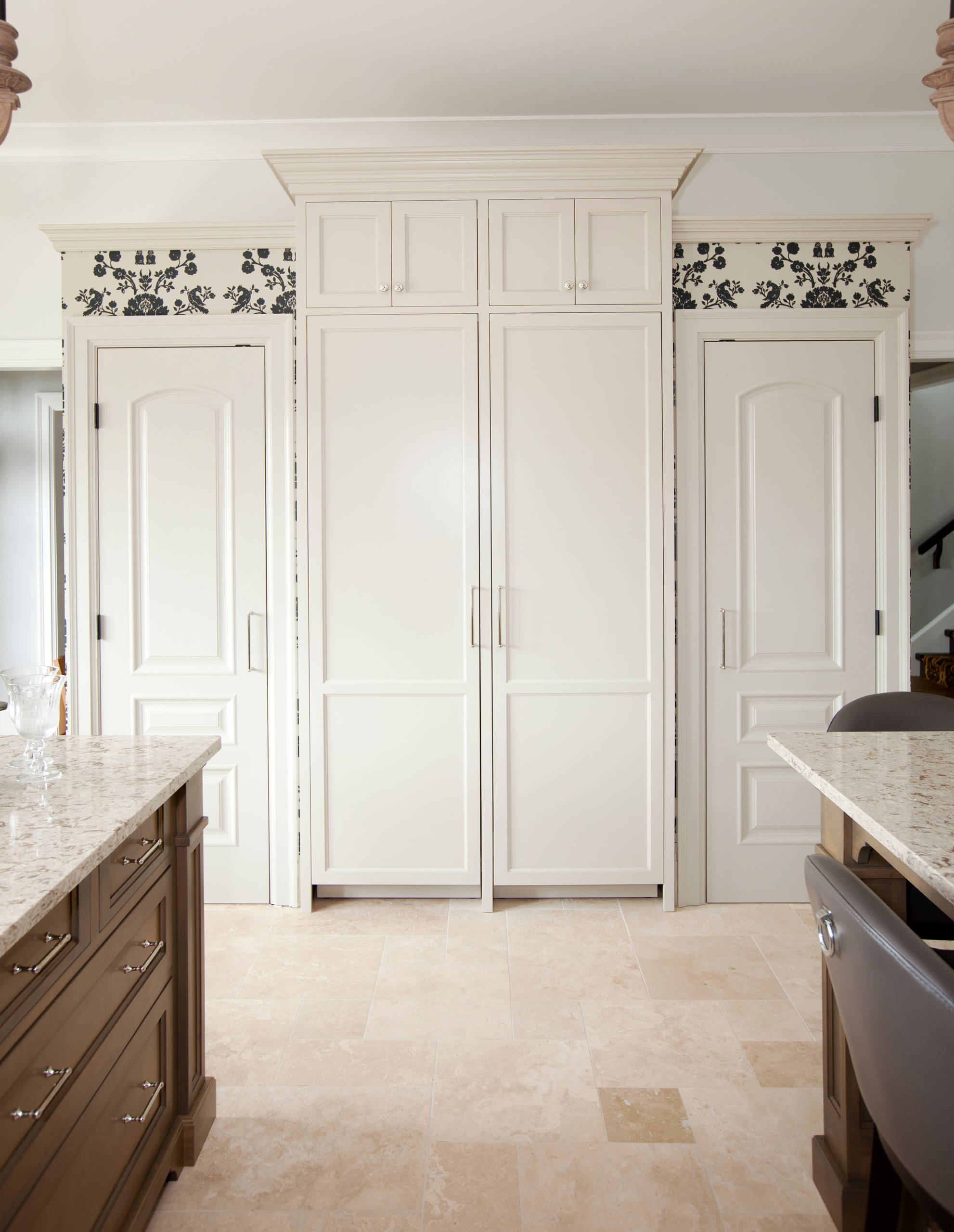 Tapete: „St. Antoine“, Farrow & Ball. Die Schränke sind in „Revere Pewter“ von Benjamin Moore lackiert.