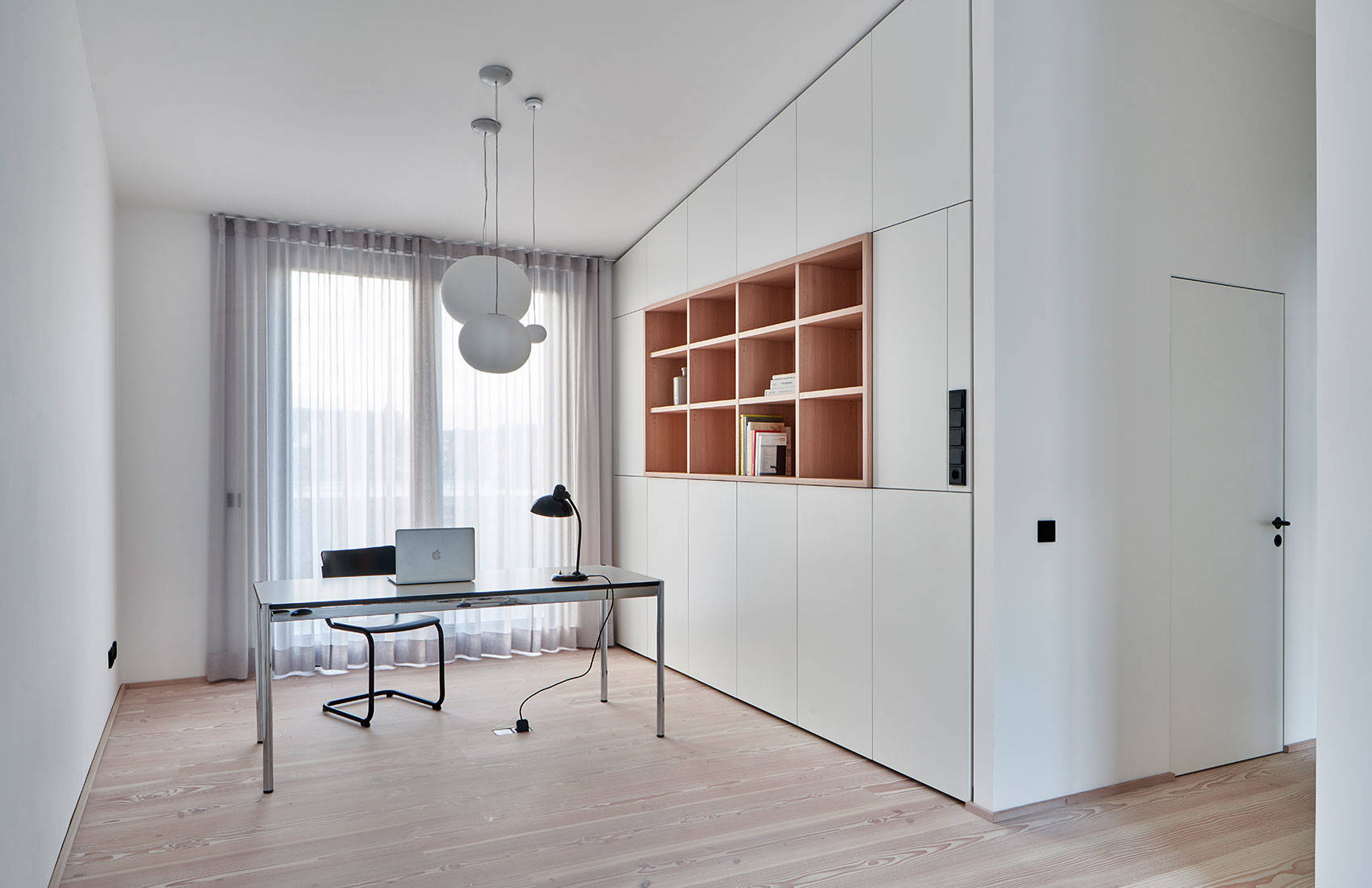Wer häufiger umbaut oder sich nicht festlegen möchte, sollte Steckdosen und Lichtschalter in Einbaumöbeln unterbringen. Die Kabel verlaufen dann im Möbelstück oder dahinter. Wird der Raum anders genutzt, die Möblierung verändert, können Schalter und Steckdosen einfacher an die neue Raumsituation angepasst werden.
