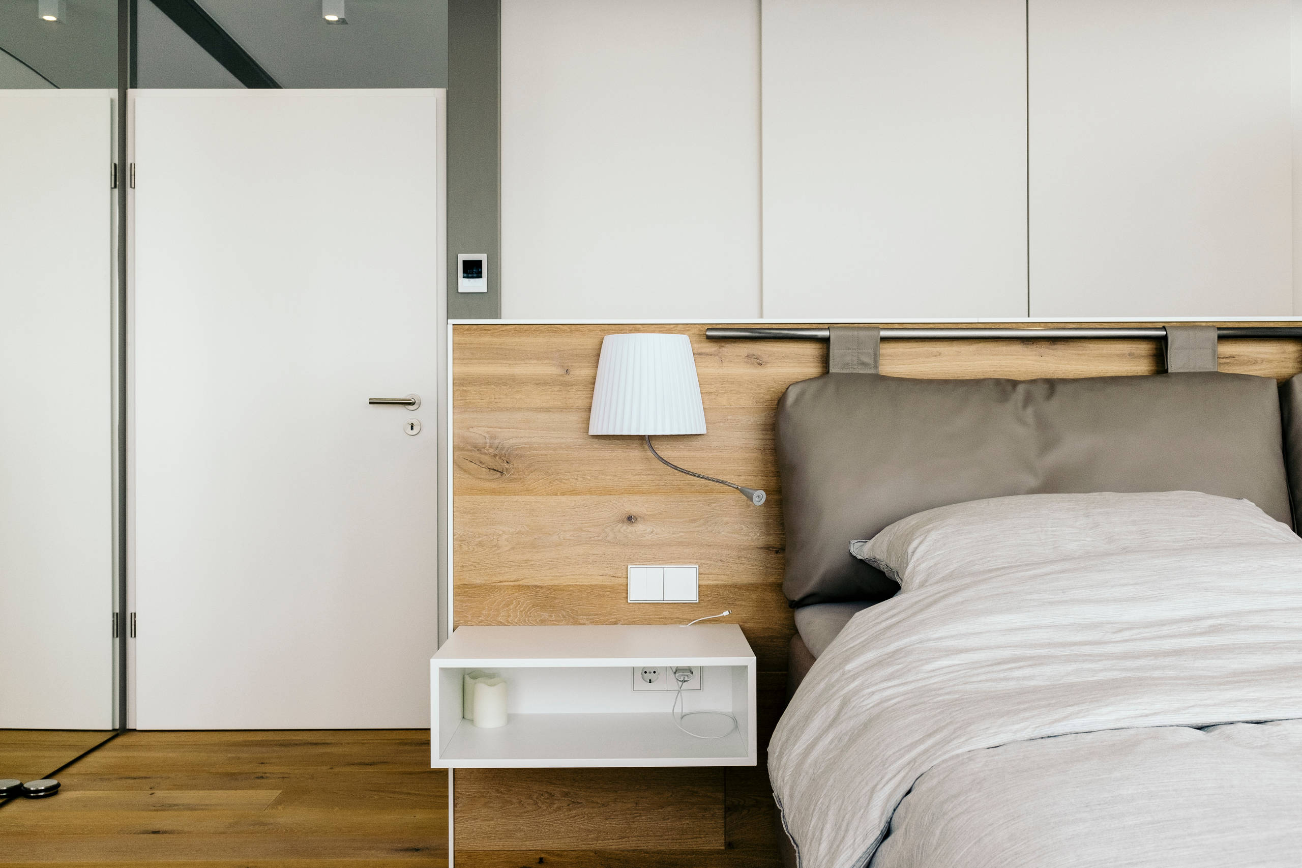 Wer bereits bestehende Räume bezieht, muss manchmal auch kompromissbereit sein. „Soll das Bett so im Zimmer aufgestellt werden, dass die Steckdose nicht mehr zugänglich ist und deshalb verlegt werden muss, gibt es mehrere Möglichkeiten“, erläutert Franz Christl von Designwerk Christl. „Einen Schlitz in die Wand zu klopfen, um das Kabel neu zu verlegen, ist die teuerste. Am einfachsten, aber nicht am schönsten ist es, das Kabel unter dem Bett entlangbaumeln zu lassen. Alternativ dazu kann das Kabel bis zur Sockelleiste auf Putz verlaufen und dann darin bis zum gewünschten Punkt gezogen werden.“ Kabel in der Sockelleiste statt in der Mauer zu verlegen, hat generell den Vorteil, dass sich mit wenig Aufwand neue Steckdosen oder Schalter montieren lassen.