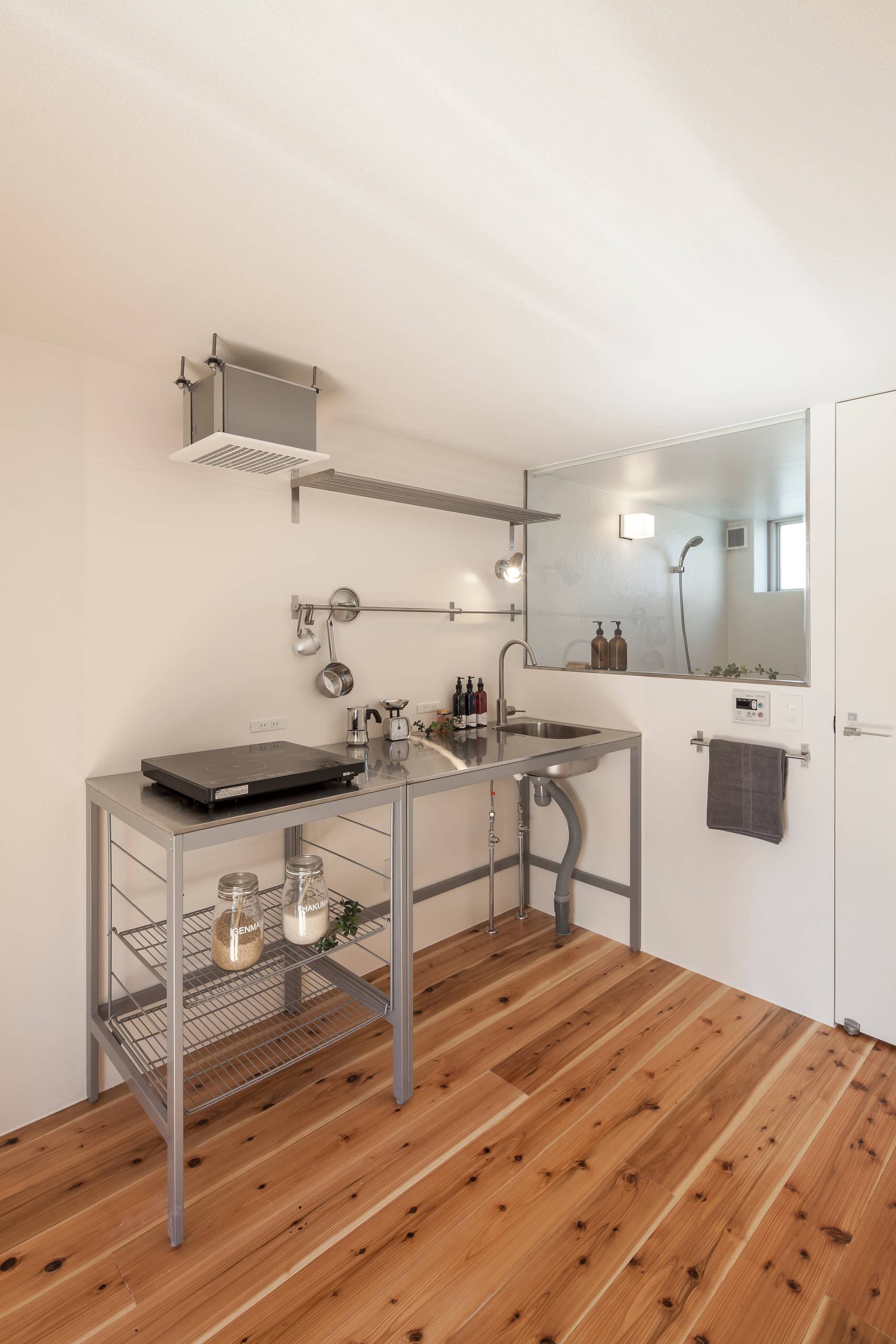 Zwei Kochplatten, eine Spüle. Mehr nicht. So sieht die auf das Wesentliche reduzierte Ausstattung einer typischen Pantryküche aus. Die Architekten von Be-Fun Design haben sich in einem Wohnhaus in Tokio – wo Wohnraum in der Regel winzig ausfällt – genau darauf beschränkt und im Industrial-Style umgesetzt.