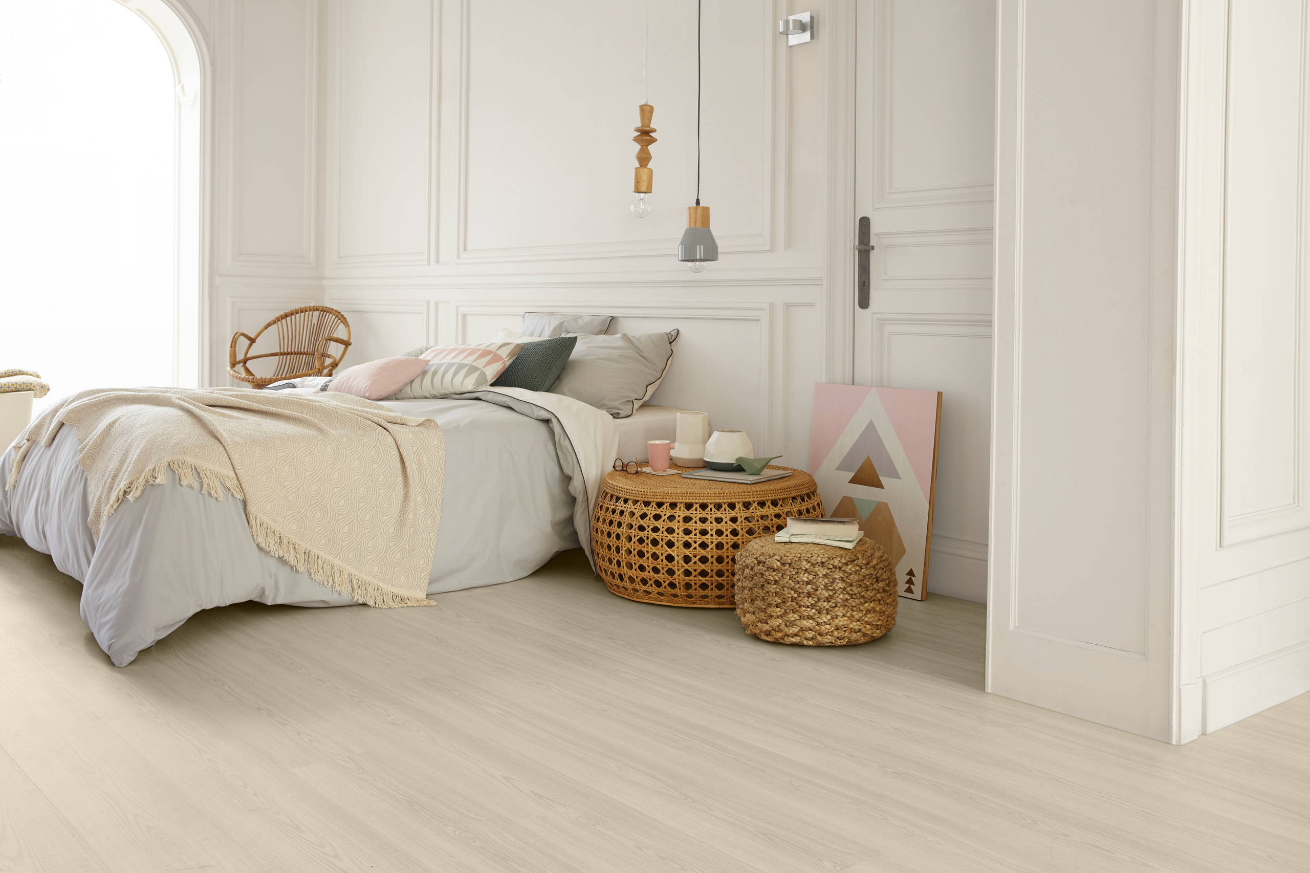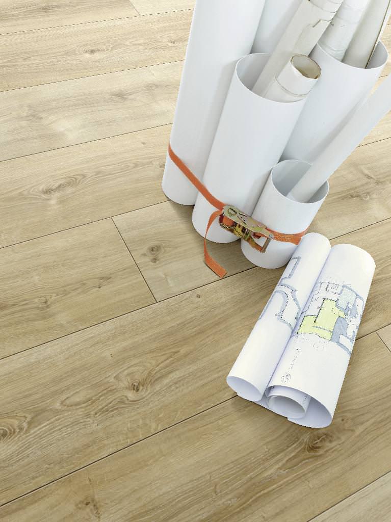 „Bei Laminat hingegen handelt es sich um Böden in Holzoptik, sie imitieren Echtholz also bloß“, erklärt der Experte. „Dabei wird auf eine Trägerplatte eine dünne Dekorschicht aufgeklebt, die in allen erdenklichen Texturmustern bedruckt sein und das Aussehen von Eiche, Teak oder anderen Holzarten annehmen kann.“