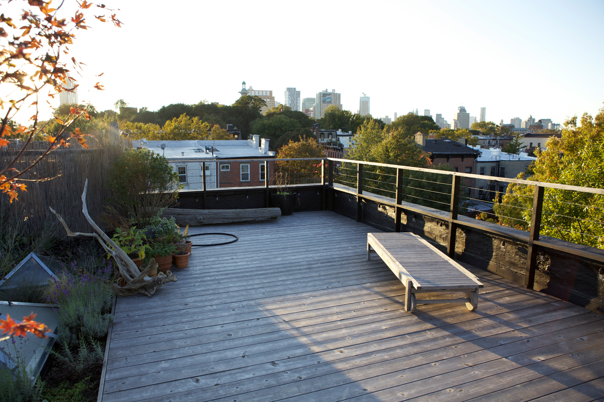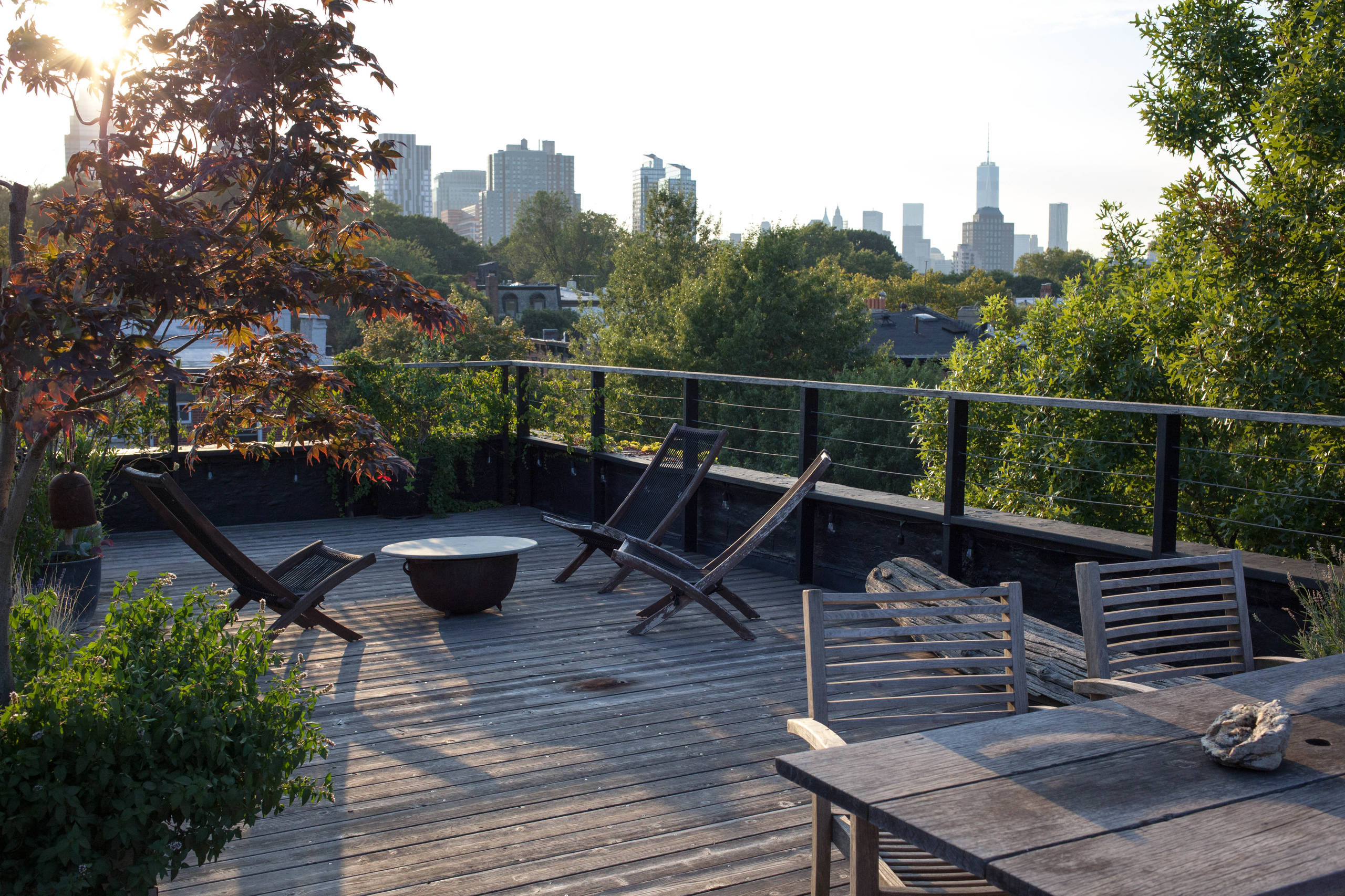 Perfekt unperfekt: Eine grüne Dachterrasse mit Ausblick über Brooklyn