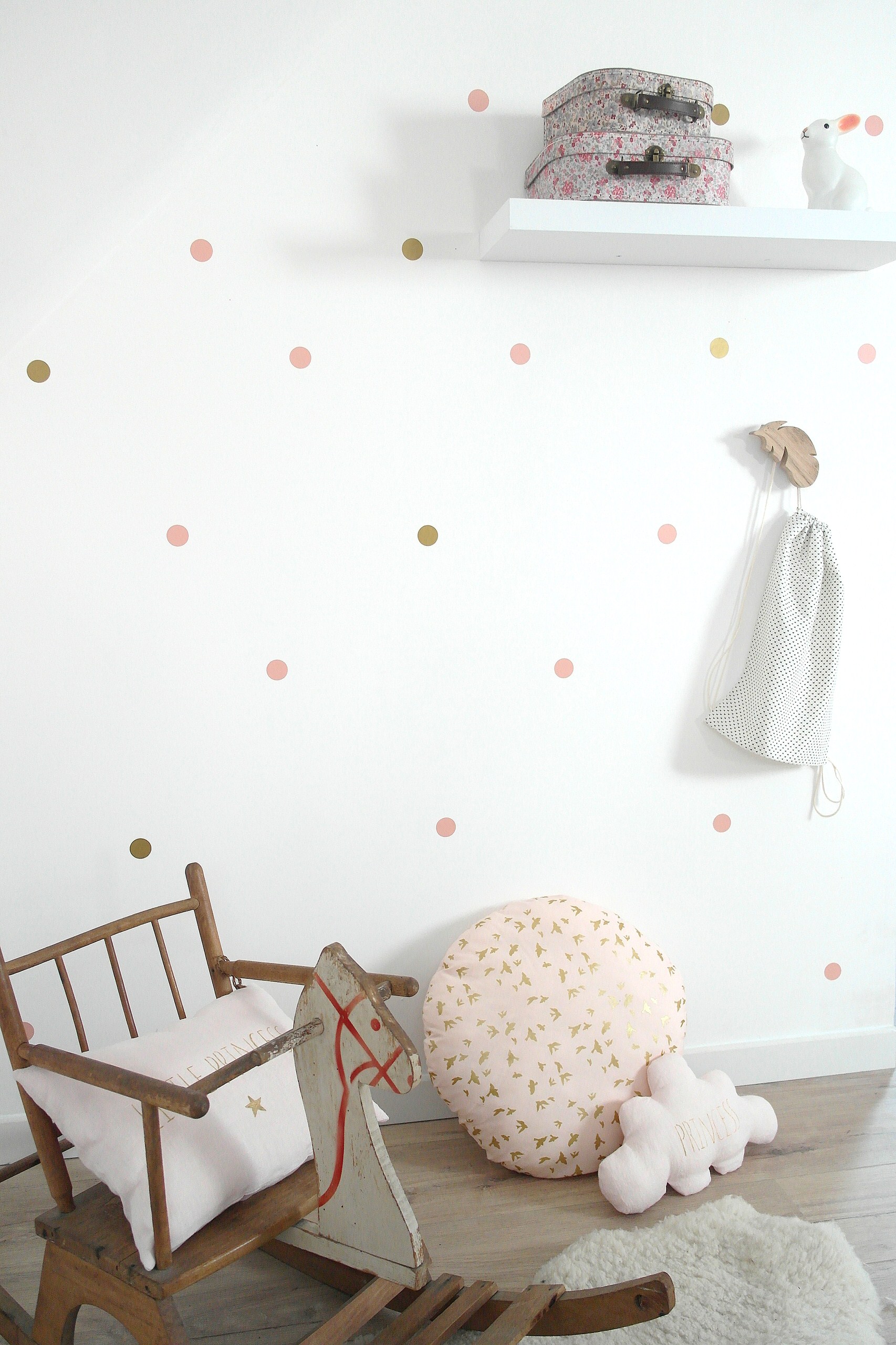 Bunte Punktesticker: Mit nichts anderem hübschen Sie eine komplette Kinderzimmerwand so unkompliziert auf – nur abziehen und aufkleben. Konfetti-Wandtattoos bringen Farbtupfer ins Zimmer, ohne es zu bunt aussehen zu lassen. Der Trick dabei ist, einfach drei oder vier Töne passend zum Farbschema des Zimmers großzügig auf der Wand zu verteilen. Voilà!