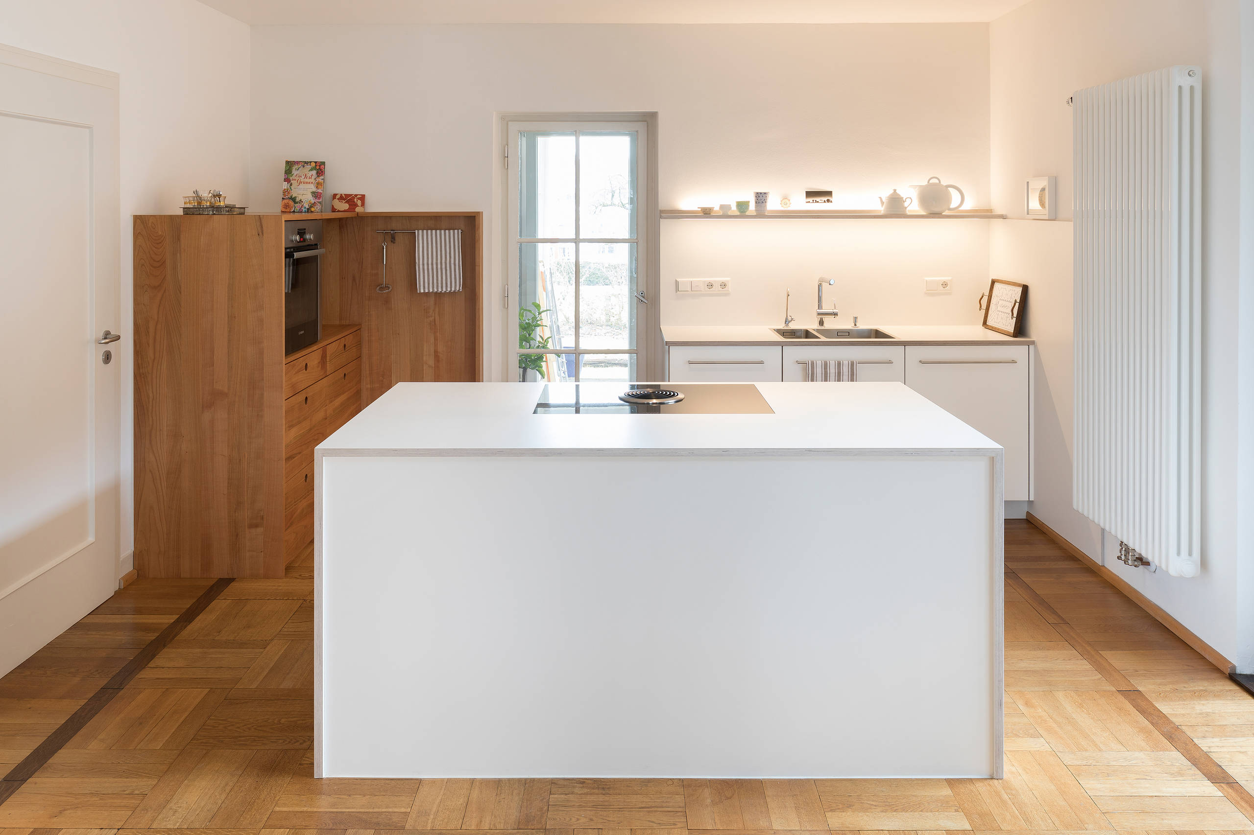 „Holzböden in der Küche sind absolut wohnlich. Aber leider nicht wirklich empfehlenswert, da sich auf Dauer die Laufwege abzeichnen. Fette und ähnliches können schnell für Verschmutzungen sorgen. Wenn sich Ess- und Wohnbereich direkt anschließen, ist es häufig eine gestalterische Entscheidung, den Boden durchzuziehen. Zu den genannten Nachteilen muss man sich bekennen“, sagt Meyer. Wer aus ästhetischen Gründen zu Parkett greift, sollte sich nicht nur mit der richtigen Oberflächenveredelung zum Schutz des Küchenbodens beschäftigen, auch die Wahl der Holzart entscheidet mit darüber, wie lange Sie an dem Ergebnis Freude haben werden. Welches Holz sich für den Küchenfußboden am besten eignet? Ein robuster Klassiker, der bei entsprechender regelmäßigen Pflege auch der stärkeren Beanspruchung in der Küche gewachsen ist, ist Eiche.