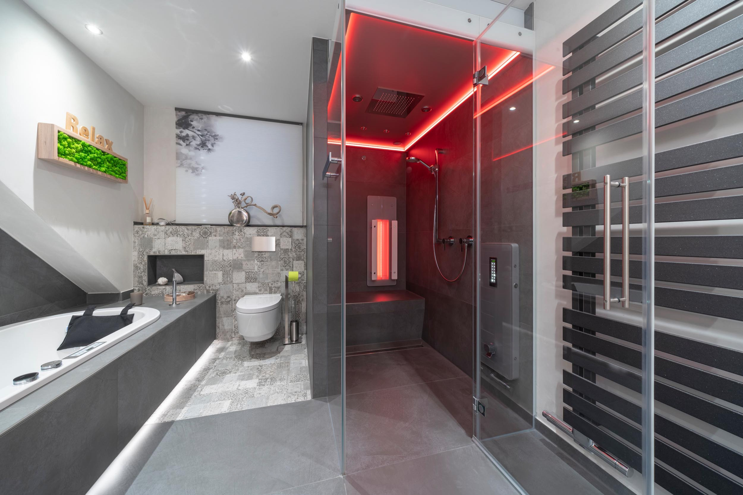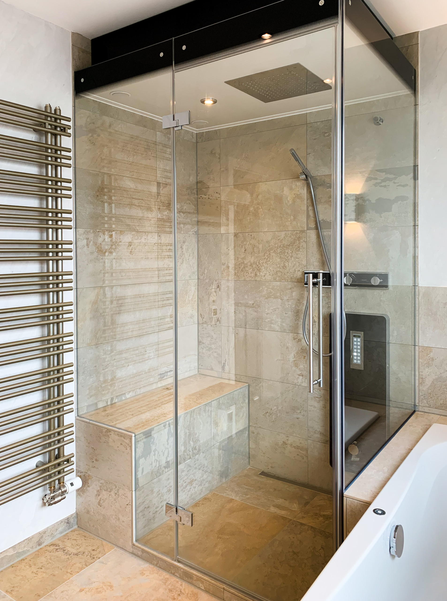 Lösung von Rohr GmbH | Bad & Heizung für wenig Platz: Dusche und Dampfsauna kombinieren.