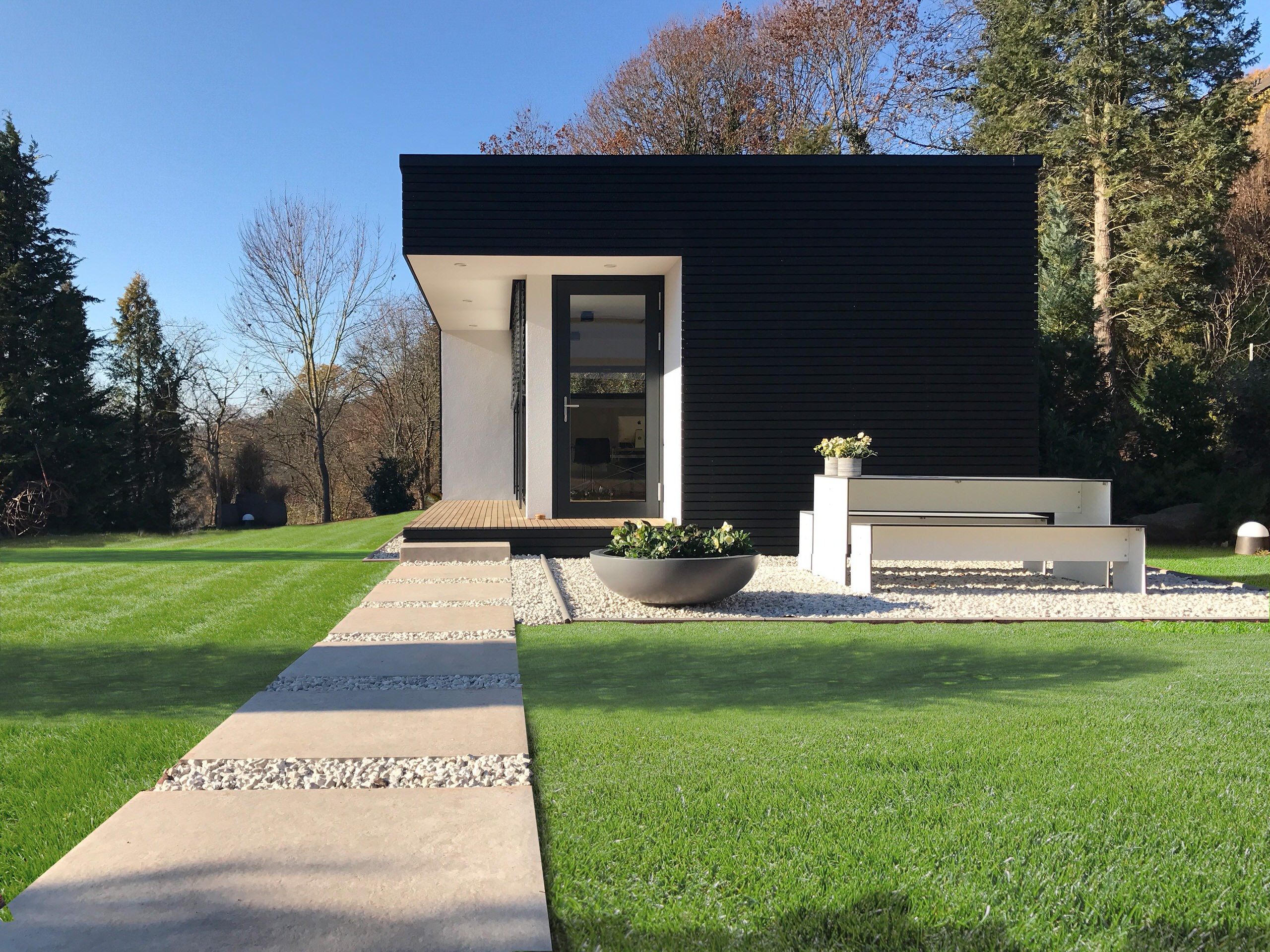Kein Platz fürs Homeoffice im Haus? Ein Modul im Garten lässt sich als Büro nutzen